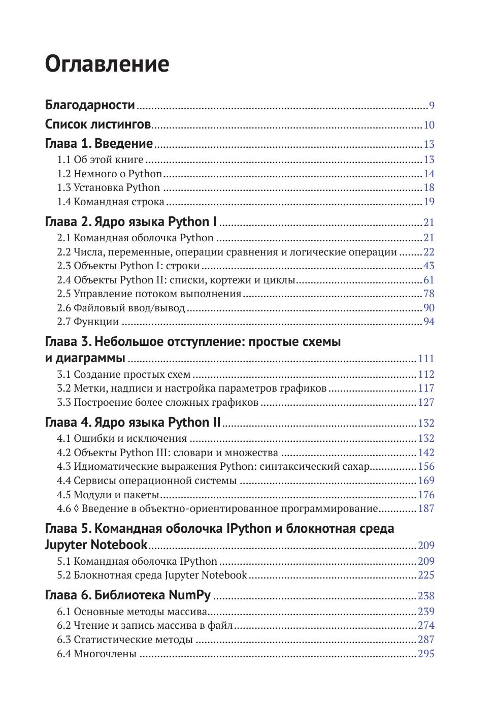 Изучение начинается с общих концепций программирования, таких как циклы и функции в ядре Python 3, затем рассматриваются библиотеки NumPy, SciPy и Matplotlib для вычислительного программирования и визуализации данных.