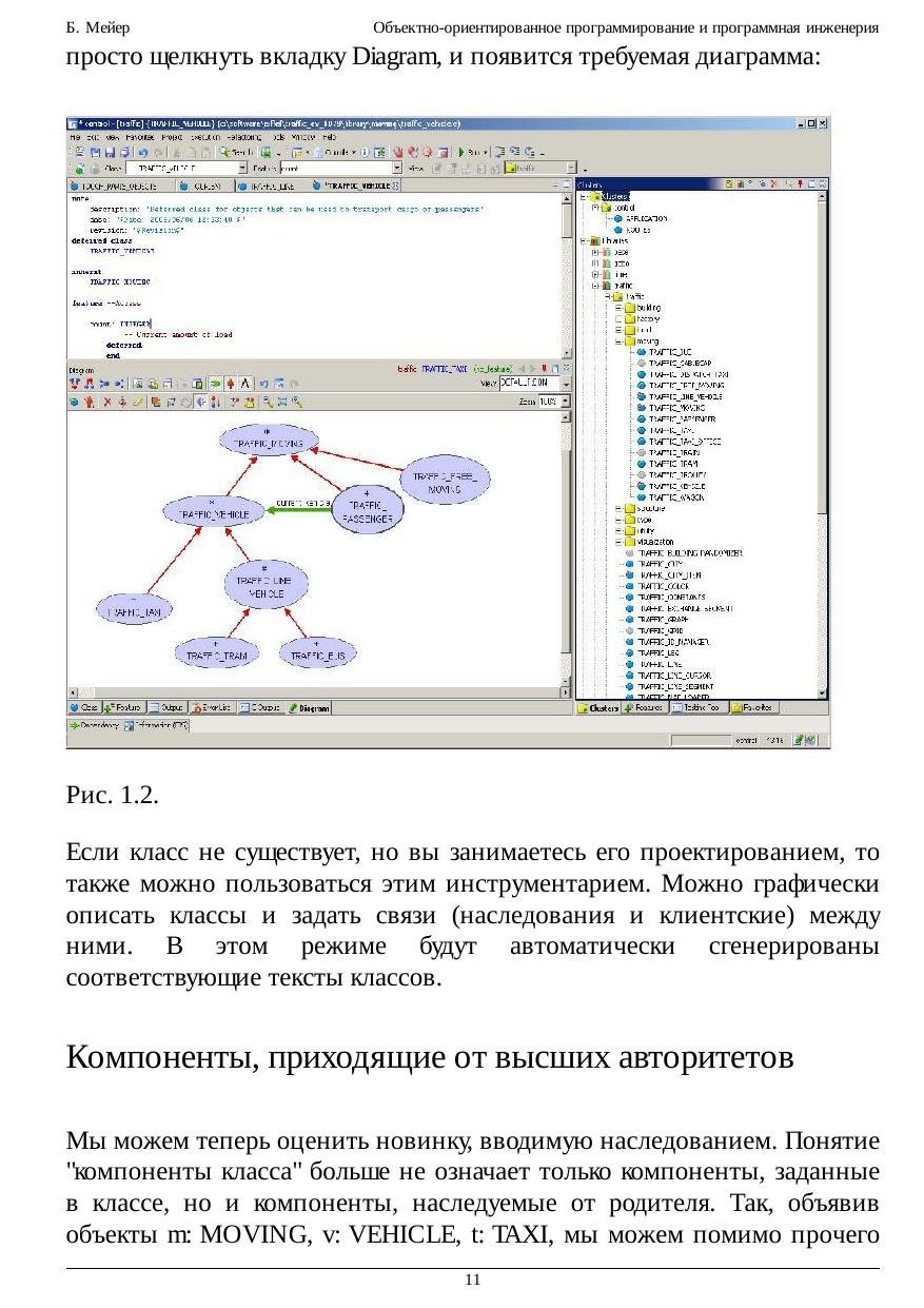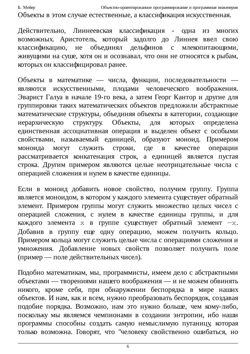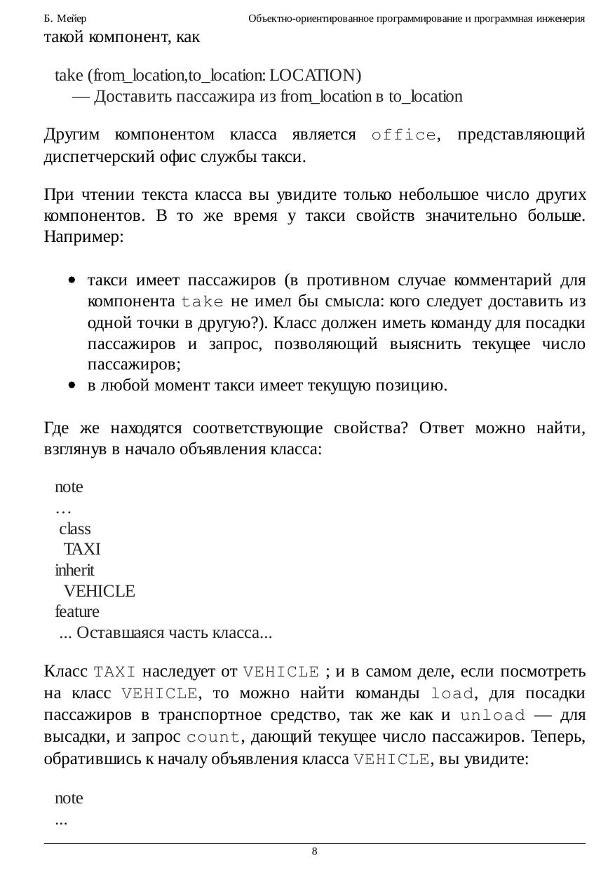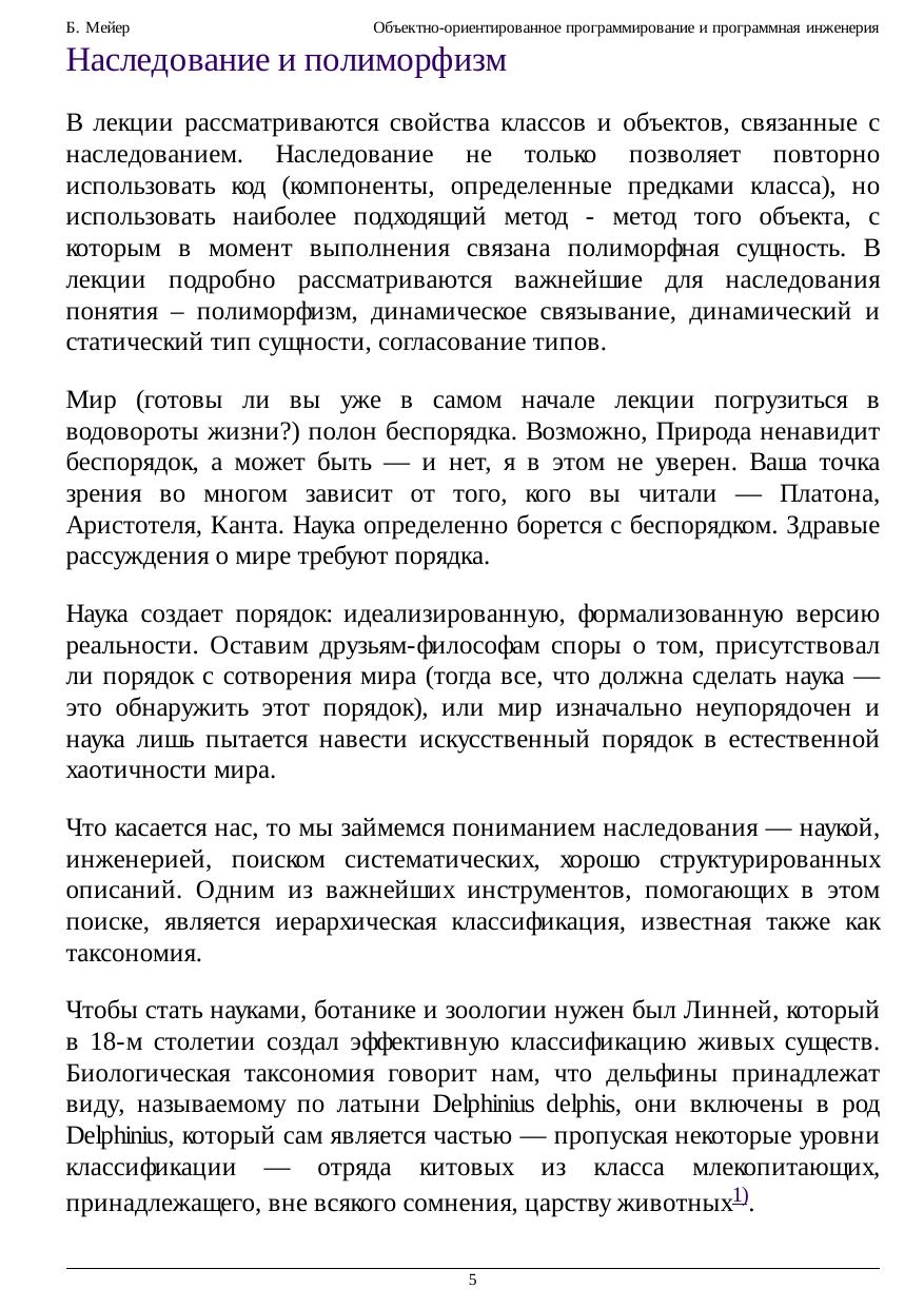 В этом курсе переместимся на передний край современной технологии программирования и посмотрим, какие преимущества можно получить, если использовать всю мощь ОО-идей. Первые лекции описывают многие механизмы наследования, включая полиморфизм, динамическое связывание, множественное наследование, понятие ограниченной универсальности. Затем исследуются новые средства, которые добавляют существенную выразительную силу объектному каркасу. В Eiffel они называются агентами (терминология не устоялась, в других языках их называют делегатами, замыканиями). Рассмотрение агентов сопровождается знакомством с основами лямбда-исчисления. Последующие лекции представляют проектирование,
