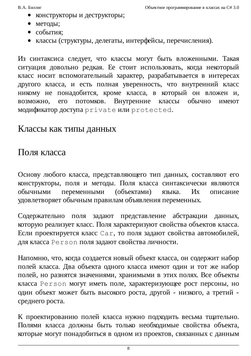 Объектное программирование в классах на C# 3.0