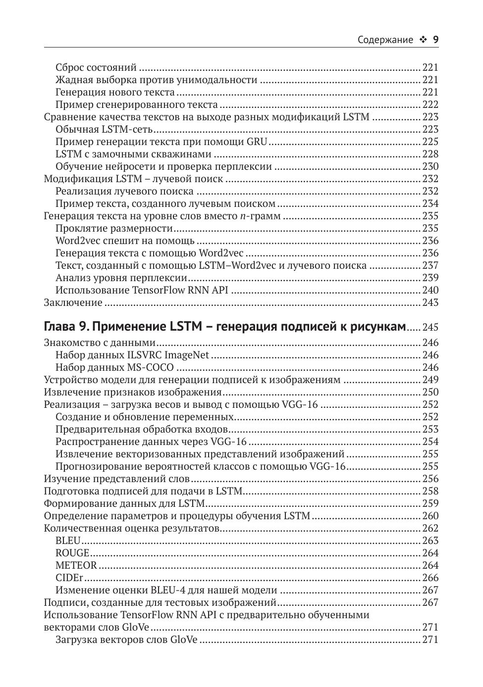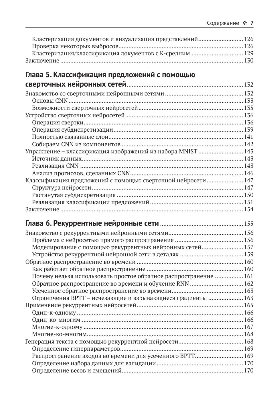 Книга начинается с изучения общих понятий NLP и принципа работы TensorFlow. Затем вы узнаете, как использовать технологию World2vec и ее расширения для создания представлений, превращающих последовательности слов в числовые векторы, понятные алгоритмам глубокого обучения, таким, как сверточные и рекуррентные нейросети, и рассмотрите примеры решения задач по классификации предложений и генерации текста. Вы научитесь применять продвинутые рекуррентные модели, включая ячейки с долгой краткосрочной памятью в приложениях для обработки естественного языка. Наконец, вы самостоятельно создадите с нуля систему нейронного машинного перевода.