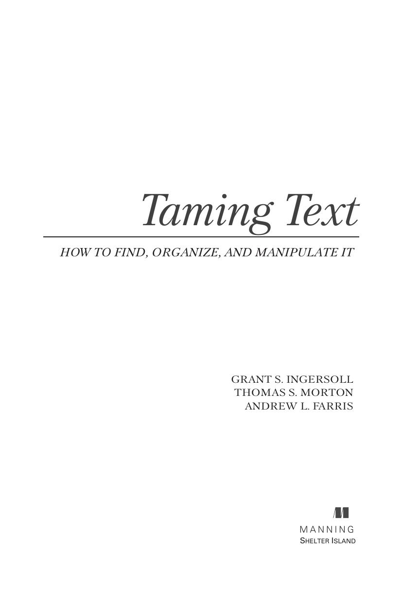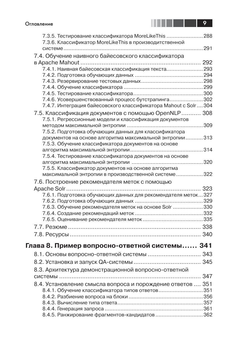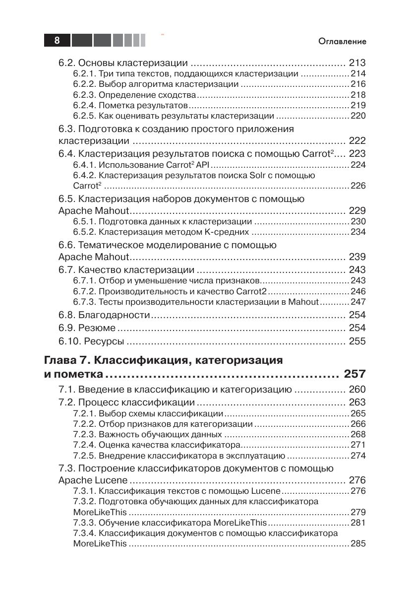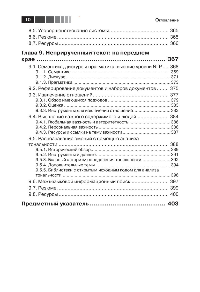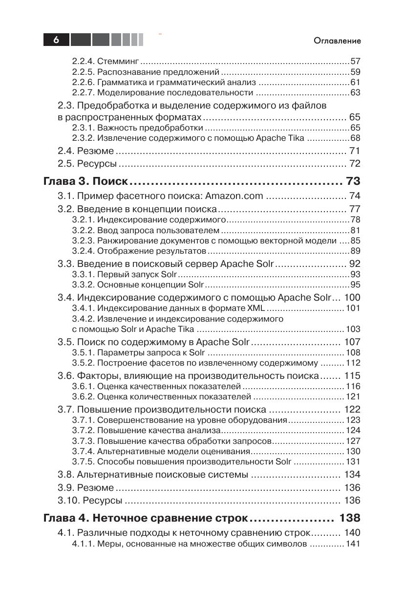 В книге описаны инструменты и методы обработки неструктурированных текстов. Прочитав ее, вы научитесь пользоваться полнотекстовым поиском, распознавать имена собственные, производить кластеризацию, пометку, извлечение информации и автореферирование. Знакомство с фундаментальными принципами сопровождается изучением реальных применений. Издание предназначено для читателей без подготовки в области математической статистики и обработки естественных языков. Примеры написаны на Java, но сами идеи могут быть реализованы на любом языке программирования