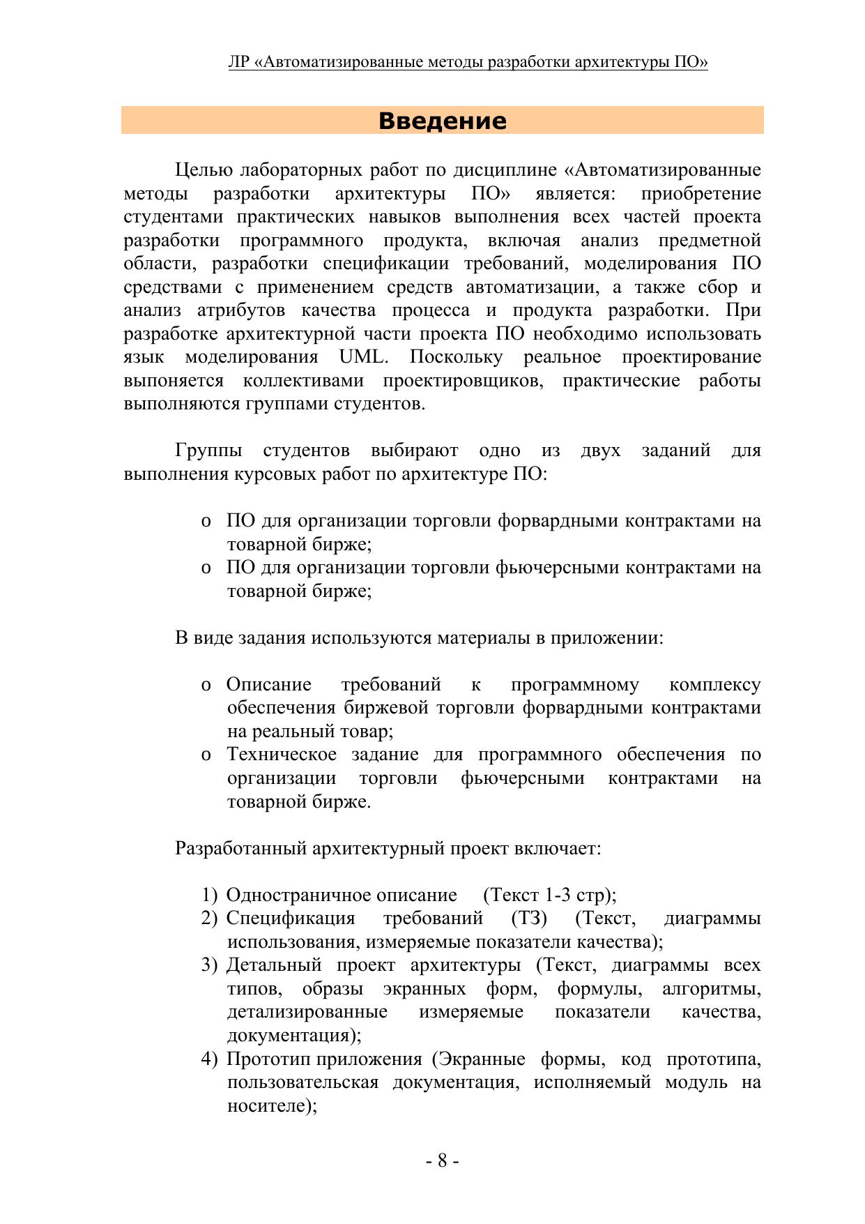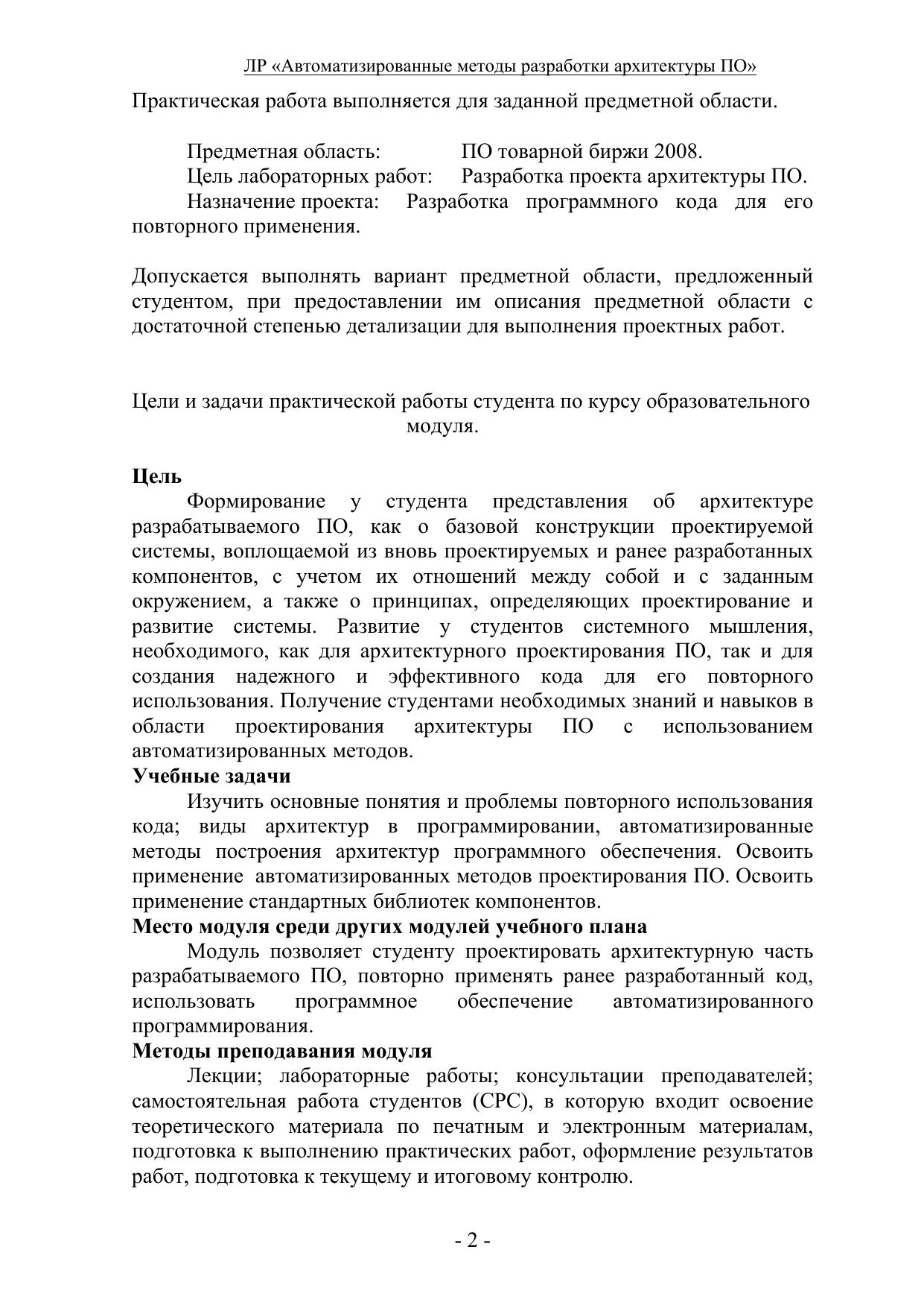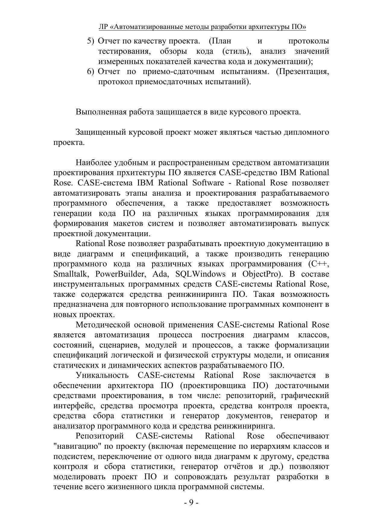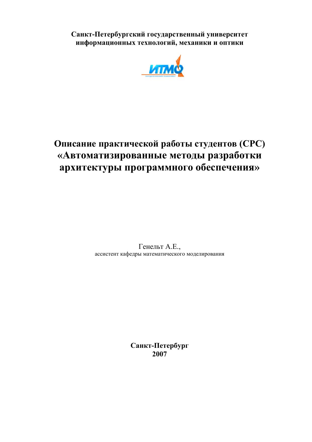 Описание практической работы студентов (СРС) «Автоматизированные методы разработки архитектуры программного обеспечения»