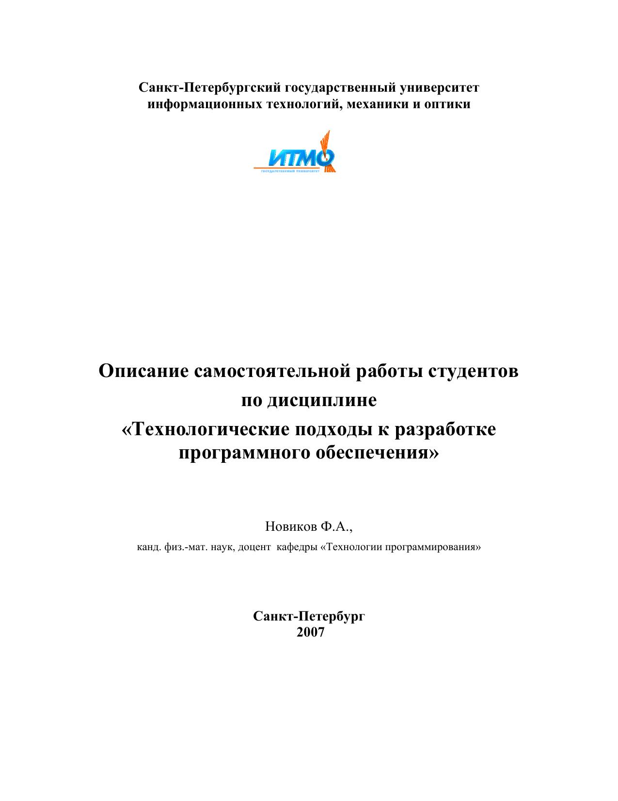 Описание самостоятельной работы студентов по дисциплине «Технологические подходы к разработке программного обеспечения»