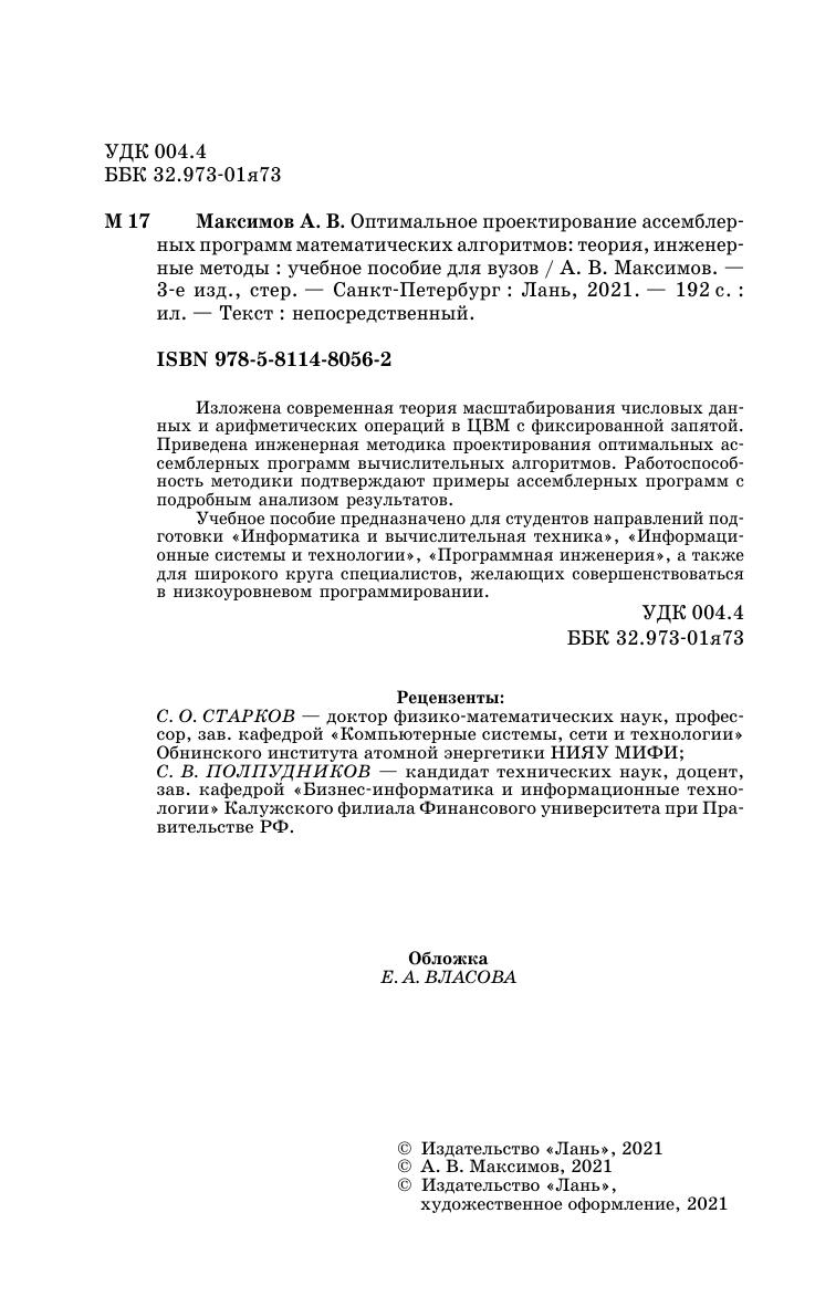 Оптимальное проектирование ассемблерных программ математических алгоритмов: теория, инженерные методы