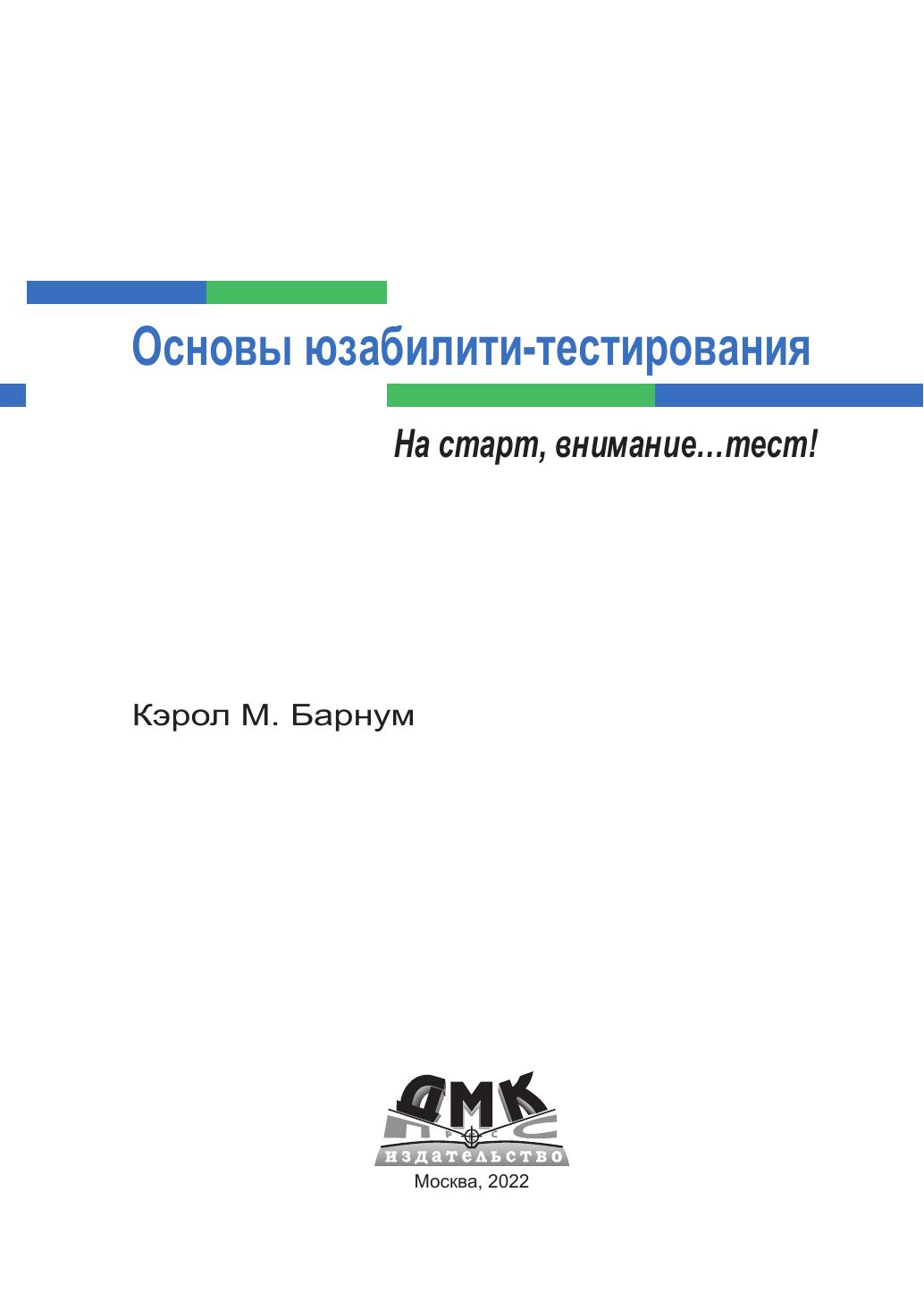 Эта книга представляет поэтапный подход к изучению процесса планирования и проведения юзабилити-тестов. В ней объясняется, как анализировать и применять результаты и что предпринять, если вы ограничены во времени и у вас небольшой бюджет. Она идеально подходит для всех, кто занимается юзабилити или ориентированным на пользователя проектированием, – от студентов до опытных профессионалов.