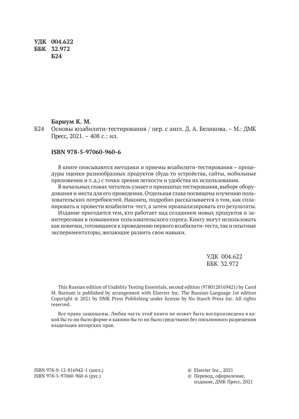 В руководстве отражены новейшие подходы, инструменты и методы, необходимые на начальном этапе юзабилити-тестирования или для проведения дальнейших исследований в этой области.