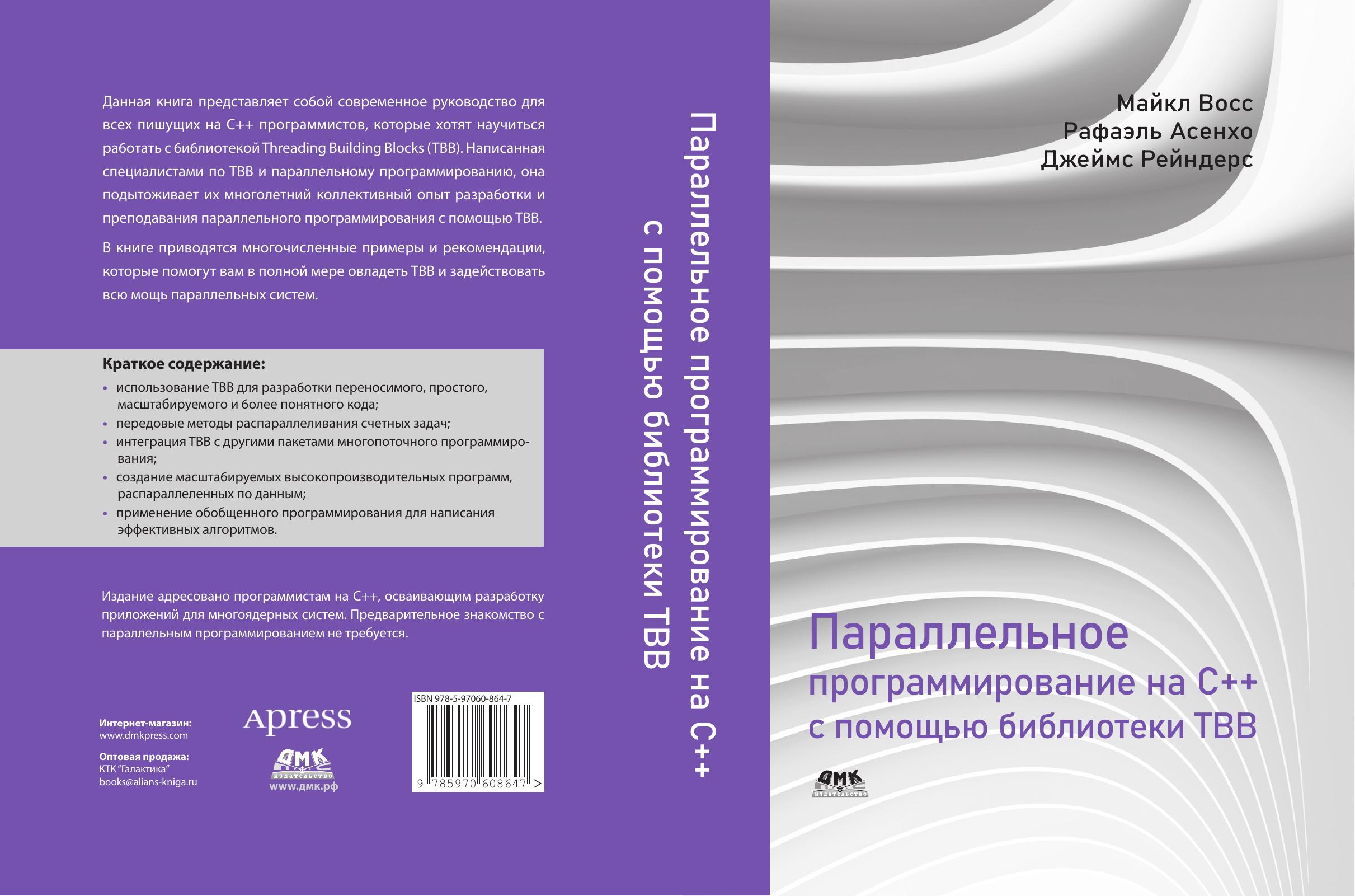 В книге приводятся многочисленные примеры и рекомендации, которые помогут вам в полной мере овладеть TBB и задействовать всю мощь параллельных систем.