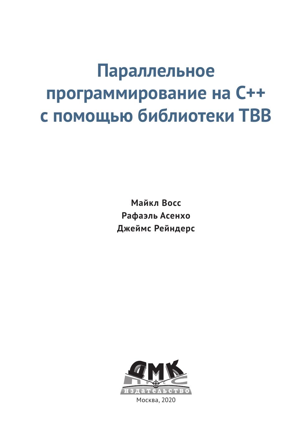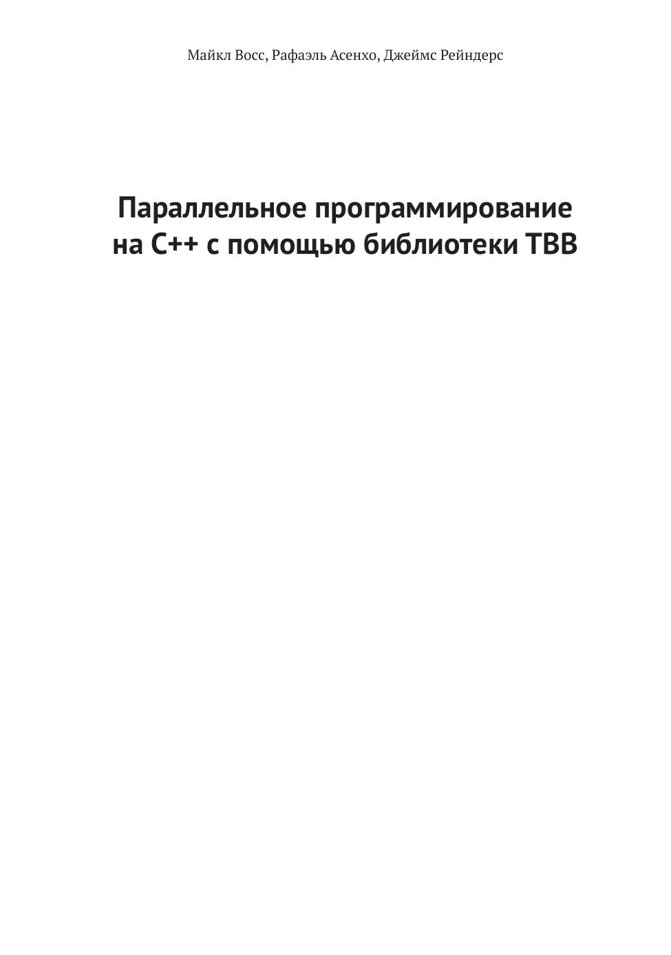 Данная книга представляет co6oй современное руководство для всех пишущих на C++ программистов, которые хотят научиться pa6oтaть с 6и6лиoтeкoй Threading Building Blocks (TBB). Написанная специалистами по TBB и параллельному программированию, она подытоживает их многолетний коллективный опыт paзpa6oтки и преподавания параллельного программирования с помощью TBB.