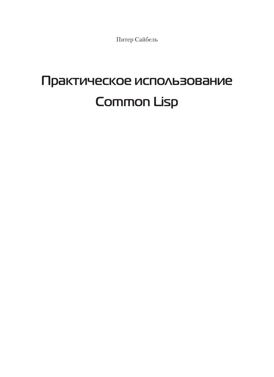 В отличие от основной массы литературы про Lisp, эта книга не просто рассказывает о ряде возможностей языка, предоставляя читателю самостоятельно осваивать их на практике. Здесь будут описаны все функции языка, которые понадобятся вам для написания реальных программ. Более трети книги посвящено разработке нетривиальных программ – статистического фильтра для спама, библиотеки для разбора двоичных файлов и сервера для трансляции музыки в формате MP3 через сеть, включающего в себя базу данных (MP3-файлов) и веб-интерфейс. Издание прнедназначено для программистов различной квалификации, как уже использующих Lisp в своей работе, так и только знакомящихся с этим языком.