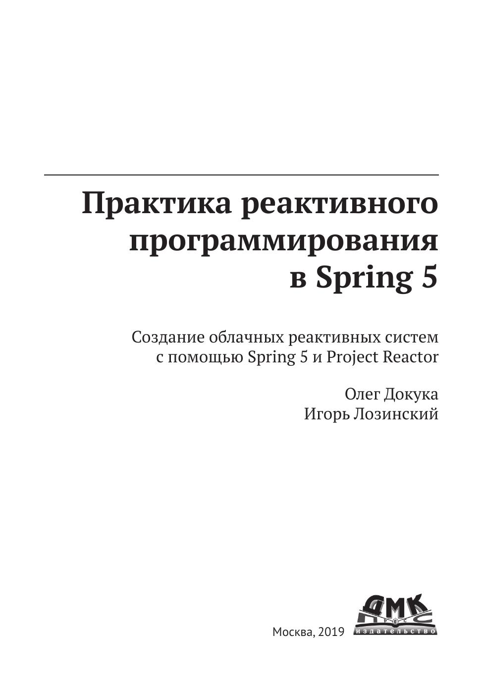 Данная книга начинается с основ реактивного программирования в Spring. Вы исследуете многочисленные возможности построения эффективных реактивных систем с помощью Spring 5 и других инструментов, таких как WebFlux и Spring Boot. Познакомитесь с методами реактивного программирования и научитесь использовать их для взаимодействий с базами данных и между серверами. Освоите навыки масштабирования с Spring Cloud Streams и научитесь создавать независимые и высокопроизводительные реактивные микросервисы.