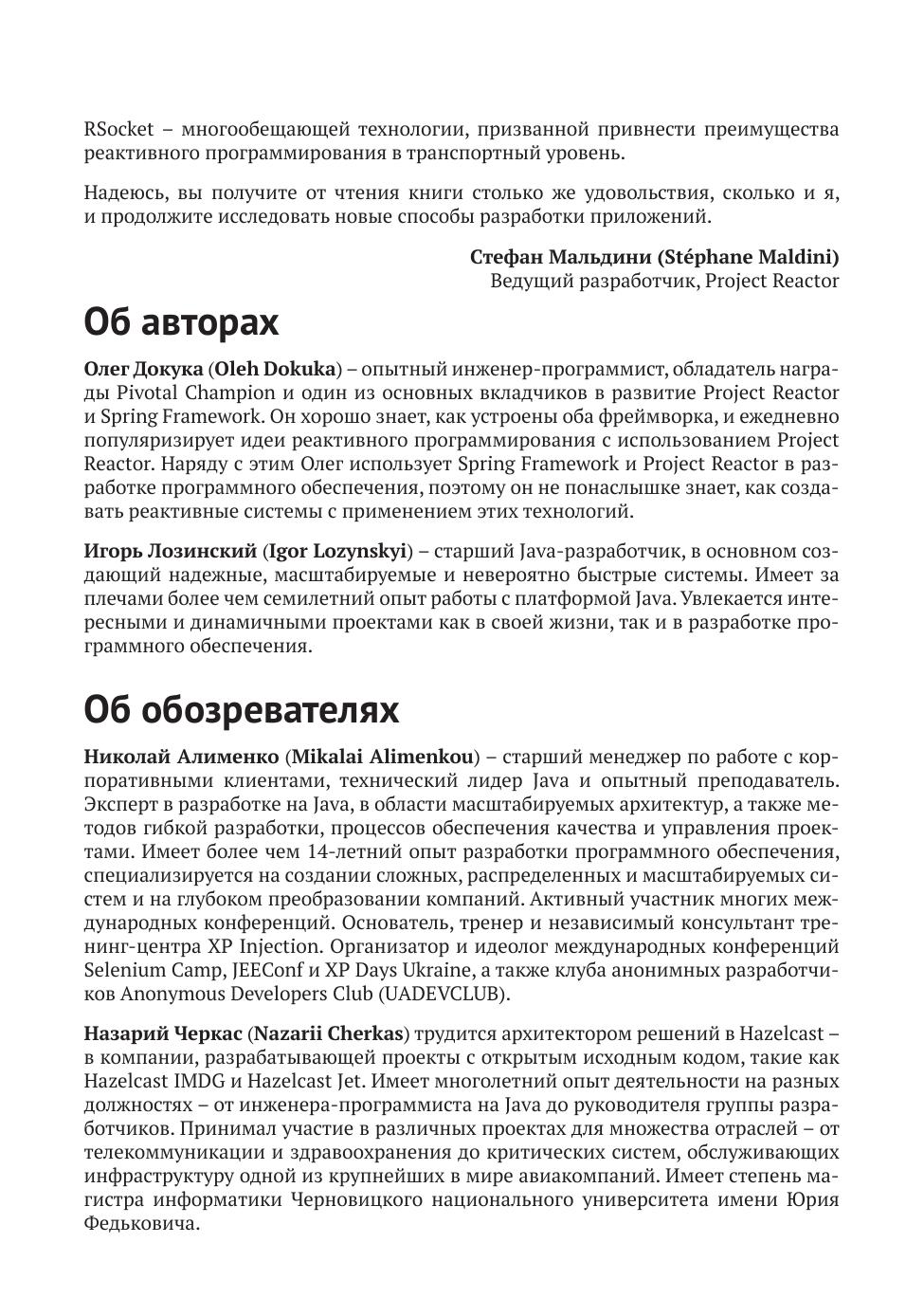 Современному бизнесу необходимы программные системы нового типа, способные оставаться отзывчивыми при любых нагрузках. Эту потребность можно удовлетворить с использованием приемов реактивного программирования; однако разработка таких систем – сложная задача, требующая глубокого понимания предметной области. Для разработки отзывчивых систем разработчики Spring Framework придумали и создали проект Project Reactor.