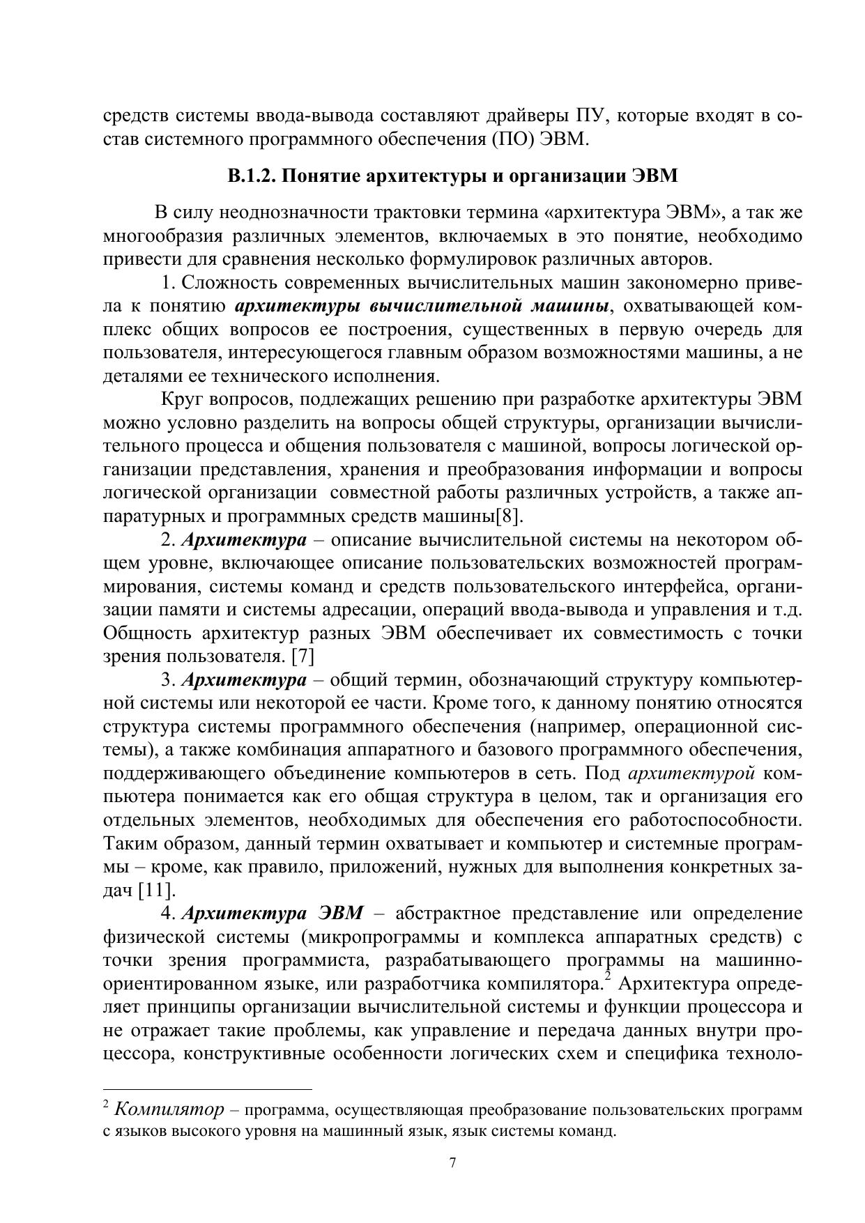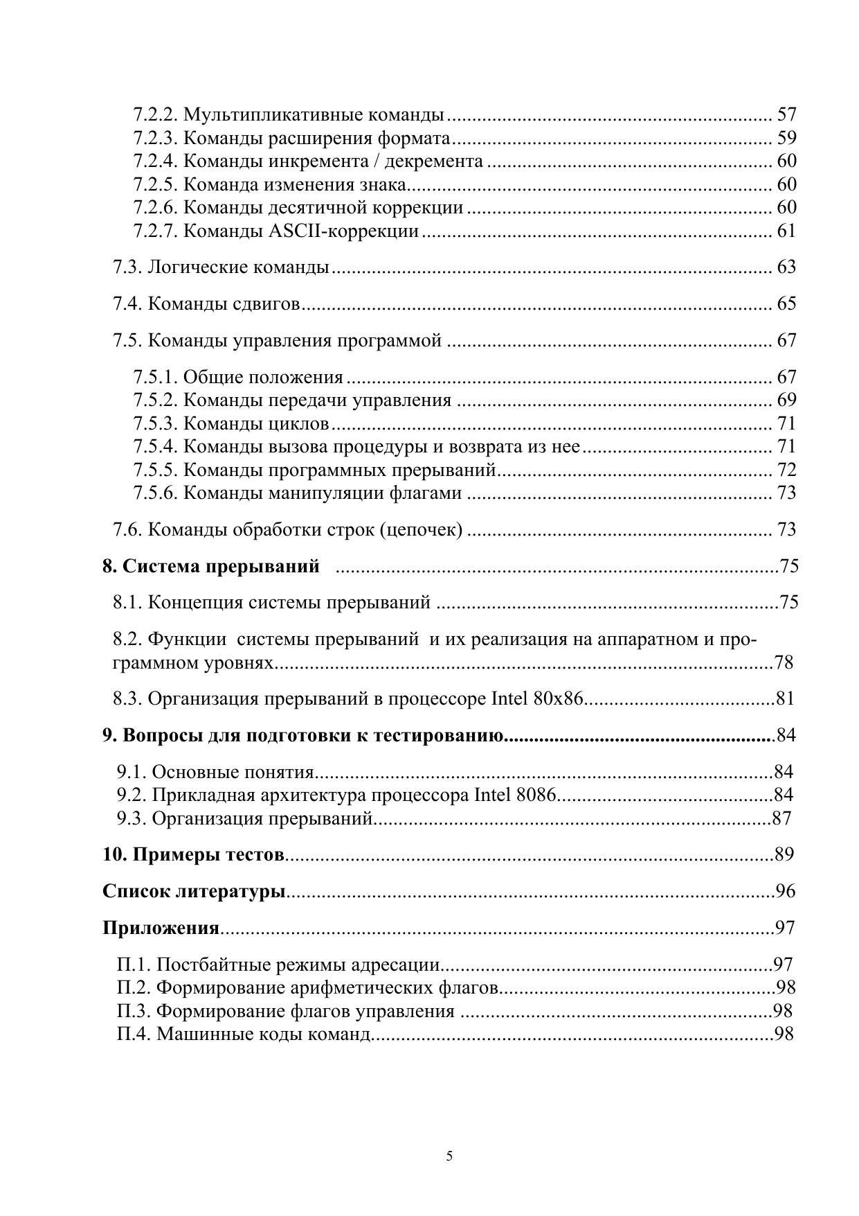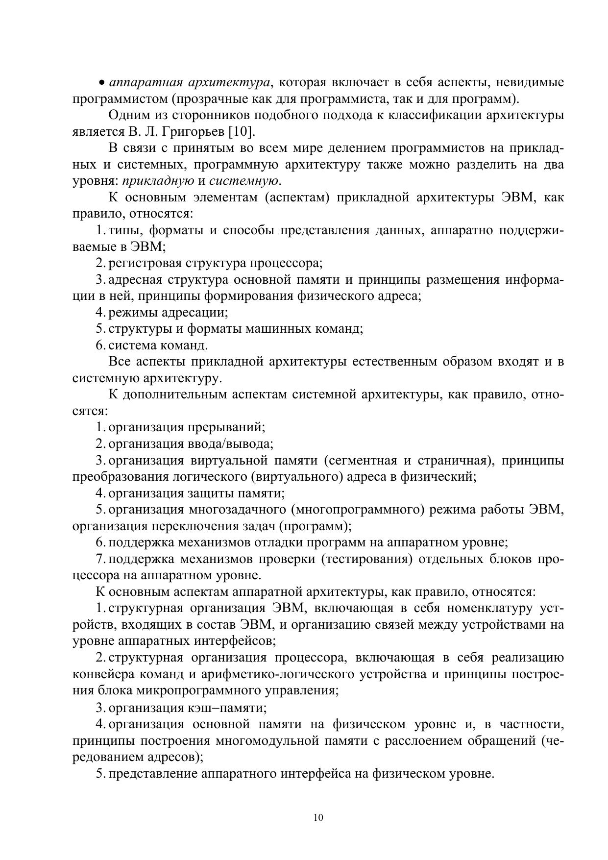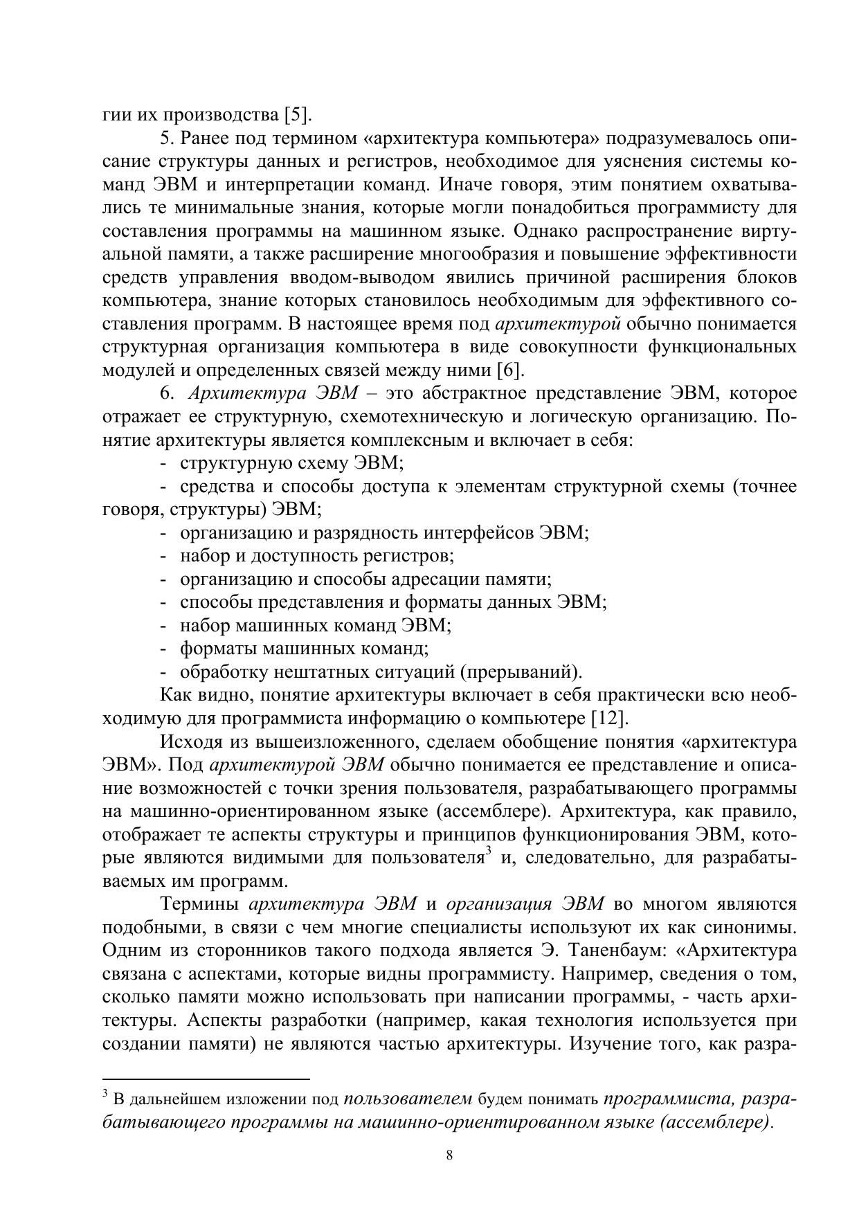 В учебном пособии содержатся основные сведения о прикладной архитектуре 16-разрядного микропроцессора Intel 8086, положившего начало самому распространенному семейству Intel 80x86, Pentium. В пособии рассмотрены основные элементыприкладной архитектуры, такие как аппаратно поддерживаемые типы и форматы данных, программная модель процессора, режимы адресации, форматы команд, а также базовая система команд. При этом элементы прикладной архитектуры рассматриваются как в общем плане (без привязки к конкретным моделям ЭВМ и процессоров), так и в плане их реализации в базовой модели процессора Intel. Рассмотренная в пособии базовая модель является основой для первоначального ознакомления с её дальнейшими развитиями в виде 32-разрядной архитектуры IA-32 (Intel Architecture), начало которой было положено процессором Intel 80386, а последующие расширения - в многочисленных моделях Intel Pentium. Пособие может служить основой при изучении программирования на языке Assembler, базовая версия которого ориентирована на рассмотренную в пособии модель Intel 8086. В целях облегчения усвоения материала и практического его использования при программировании приводится большое число примеров команд на ассемблере, поясняющих реализацию операций различных типов.