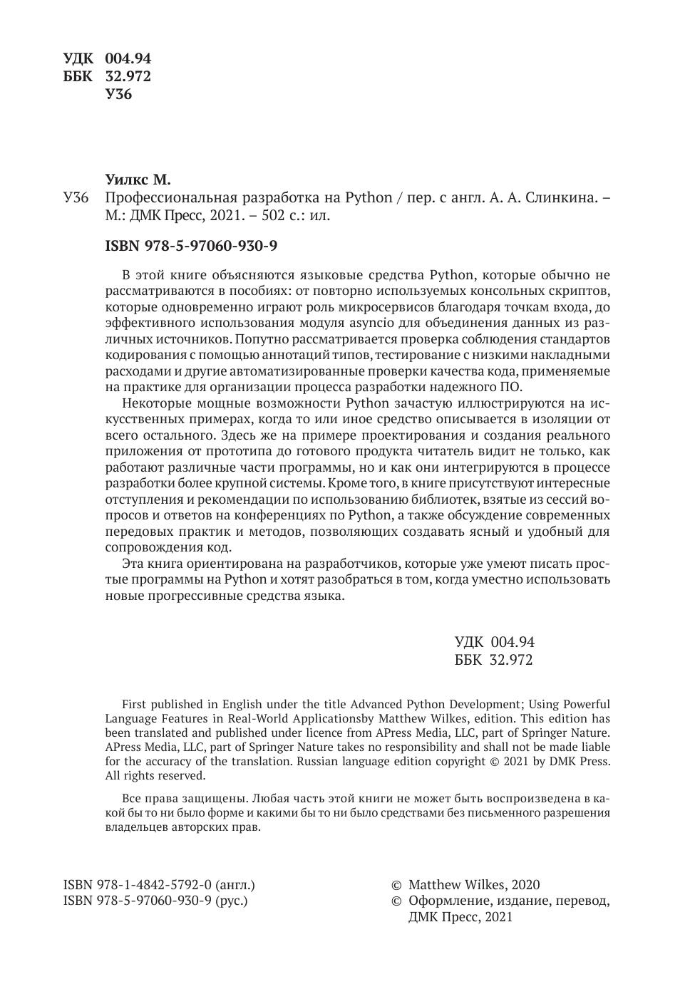 Объясняются языковые средства Python, обычно мало рассматриваемые в других изданиях: от повторно используемых консольных скриптов, одновременно играющих роль микросервисов благодаря точкам входа, до эффективного использования модуля asyncio для объединения данных из различных источников.
