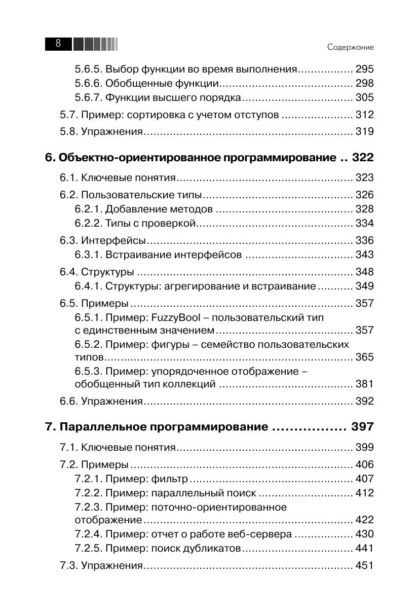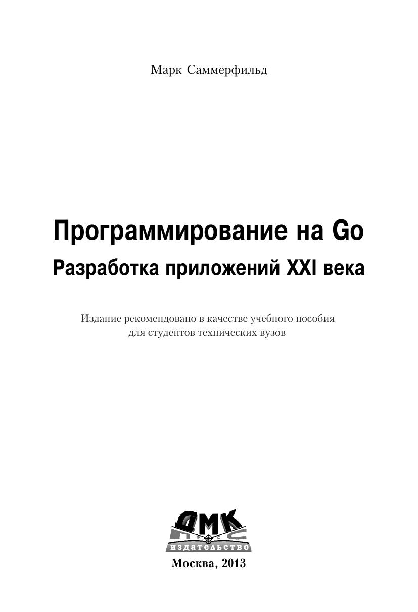 На сегодняшний день Go – самый впечатляющий из новых языков программирования. Изначально он создавался для того, чтобы помочь задействовать всю мощь современных многоядерных процессоров. В этом руководстве Марк Саммерфильд, один из основоположников программирования на языке Go, показывает, как писать программы, в полной мере использующие его революционные возможности и идиомы. Данная книга представляет собой одновременно и учебник, и справочник, сводя воедино все знания, необходимые для того, чтобы продолжать освоение Go, думать на Go и писать на нем высокопроизводительные программы. Автор приводит множество сравнений идиом программирования, демонстрируя преимущества Go перед более старыми языками и уделяя особое внимание ключевым инновациям. Попутно, начиная с самых основ, Марк Саммерфильд разъясняет все аспекты параллельного программирования на языке Go с применением каналов и без использования блокировок, а также показывает гибкость и необычность подхода к объектно-ориентированному программированию с применением механизма динамической типизации. Издание предназначено для программистов разной квалификации, желающих освоить и применять в своей практике язык Go.