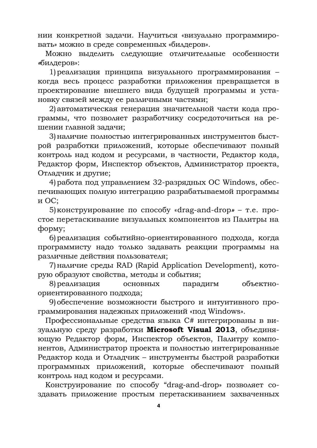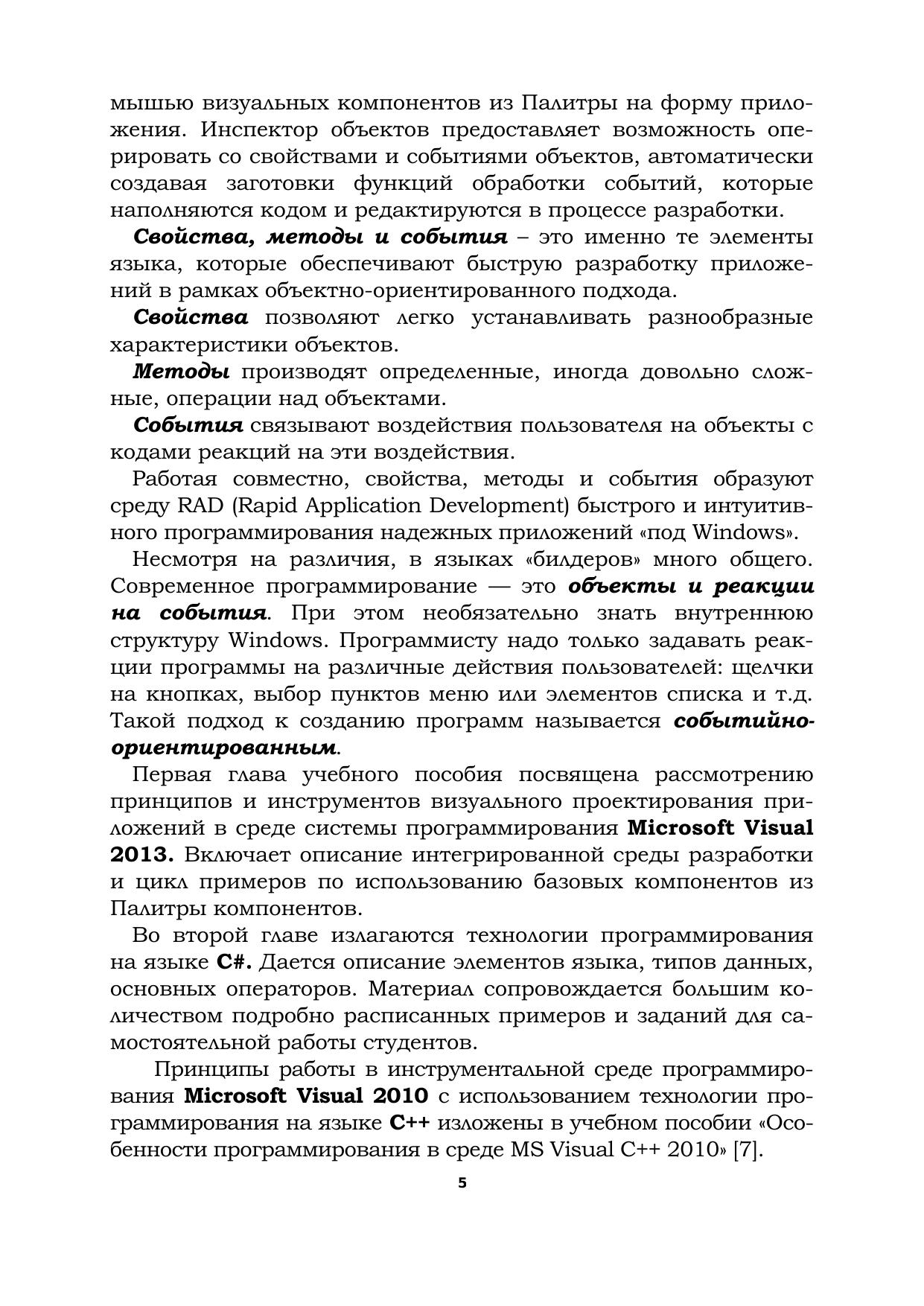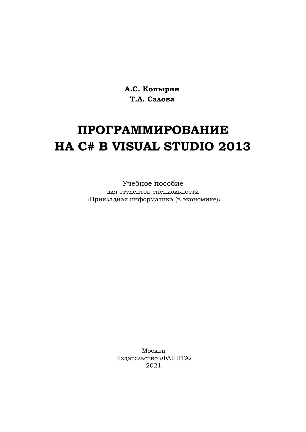 Посвящено изложению особенностей работы в одной из современных инструментальных сред программирования - Microsoft Visual 2013 на языке программирования высокого уровня С#. Приведено большое количество методически обоснованных примеров и заданий для самостоятельного выполнения.