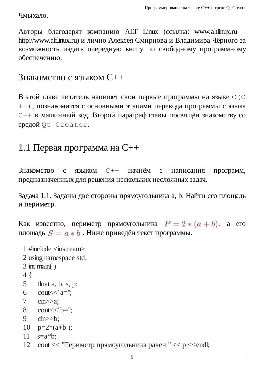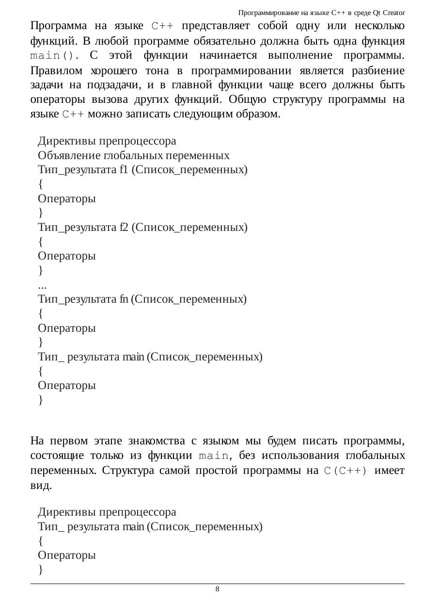 Программирование на языке С++ в среде Qt Creator