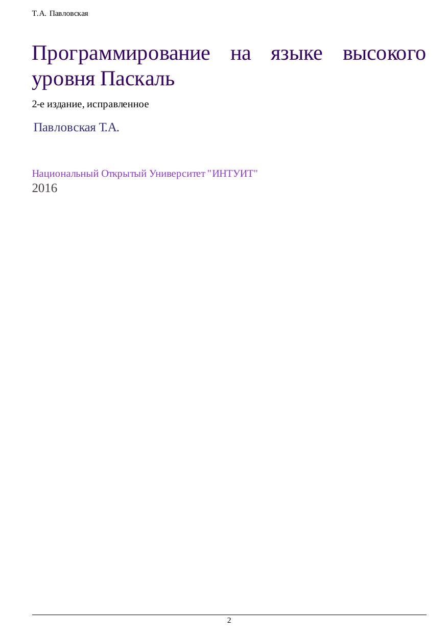 Программирование на языке высокого уровня Паскал