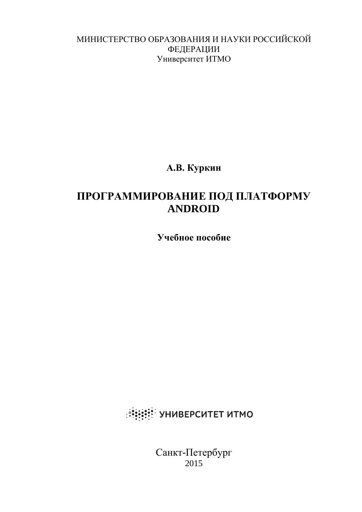 Программирование под платформу Andriod. Учебное пособие