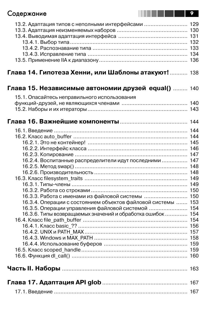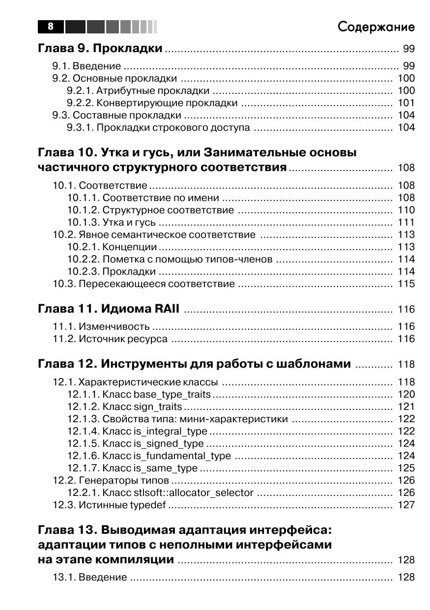 В книге известный специалист по языку C++ Мэтью Уилсон демонстрирует, как выйти за пределы стандарта C++ и расширить стандартную библиотеку шаблонов, применив лежащие в ее основе принципы к различным API и нестандартным наборам, чтобы получить более эффективные, выразительные, гибкие и надежные программы. Автор описывает передовые приемы, которые помогут вам в совершенстве овладеть двумя важными темами: адаптация API библиотек и операционной системы к STL-совместимым наборам и определение нетривиальных адаптеров итераторов. Это даст вам возможность в полной мере реализовать заложенные в STL возможности для написания эффективных и выразительных программ. На реальных примерах Уилсон иллюстрирует ряд важных концепций и технических приемов, позволяющих расширить библиотеку STL в таких направлениях, о которых ее создатели даже не думали, в том числе: наборы, категории ссылок на элементы, порча итераторов извне и выводимая адаптация интерфейса. Эта книга станет неоценимым подспорьем для любого программиста на C++, хотя бы в минимальной степени знакомого с STL. На прилагаемом компакт-диске находится обширная коллекция открытых библиотек, созданных автором. Также включено несколько тестовых проектов и три дополнительных главы.