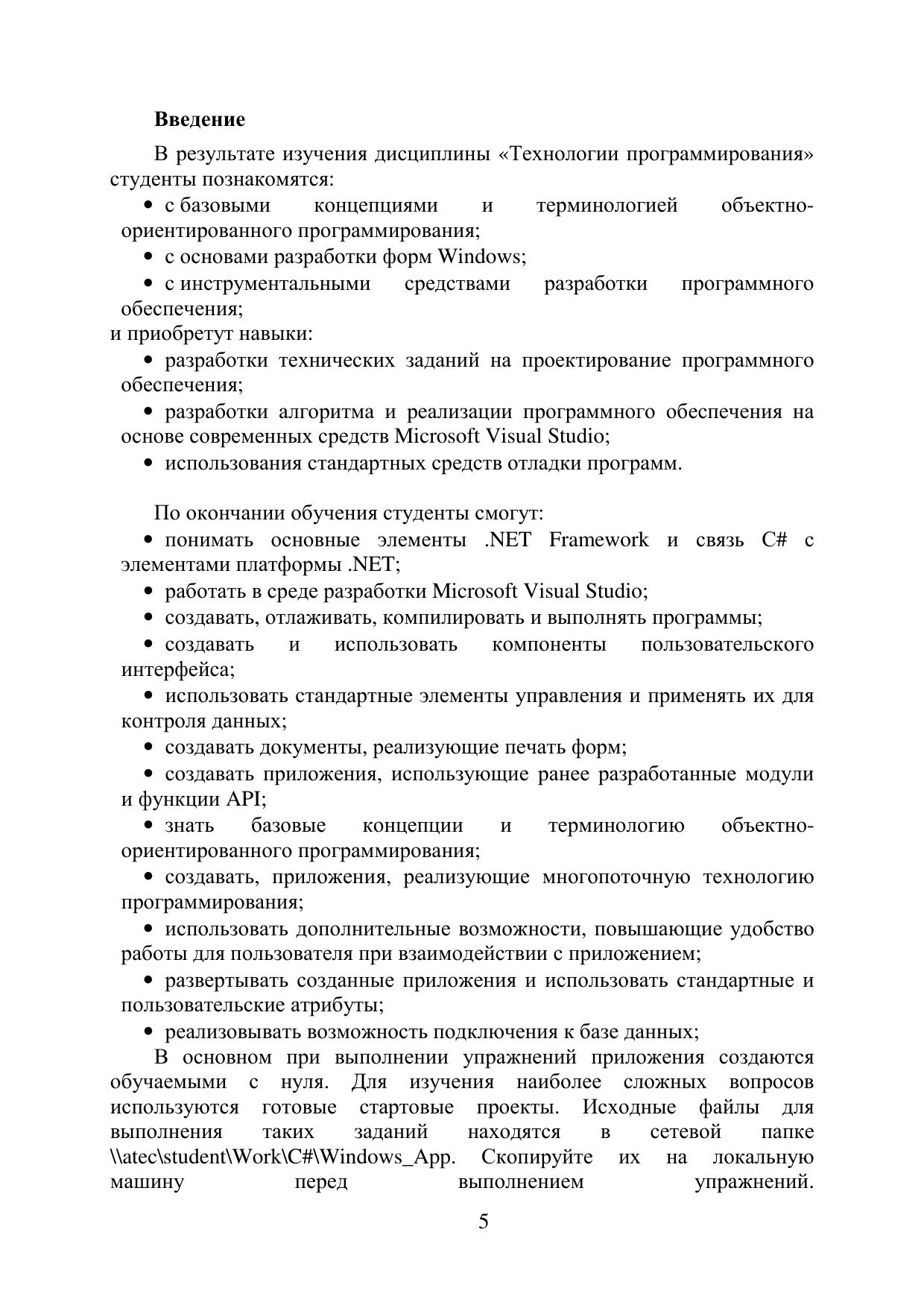 В пособии излагаются основы разработки Windows приложений и методические указания к выполнению лабораторных работ по дисциплине «Технологии программирования».