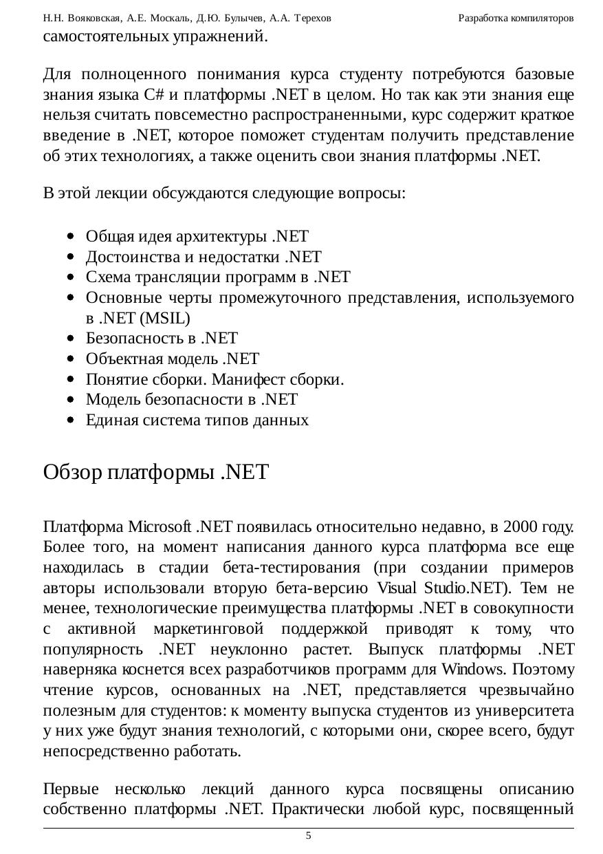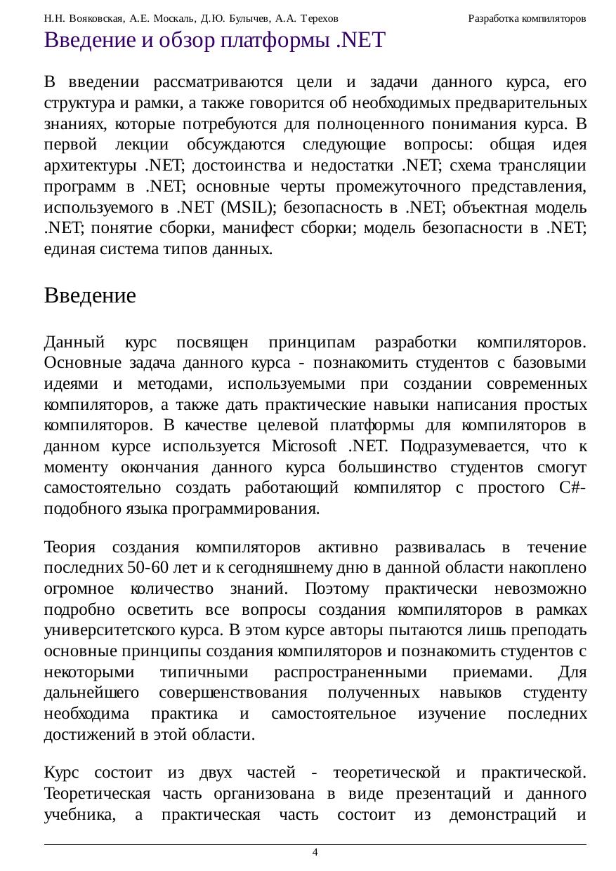 В данном курсе рассматриваются теоретические основы и практические методы создания компиляторов языков программирования. Изложение ведется на основе языка программирования C# и платформы .NET.