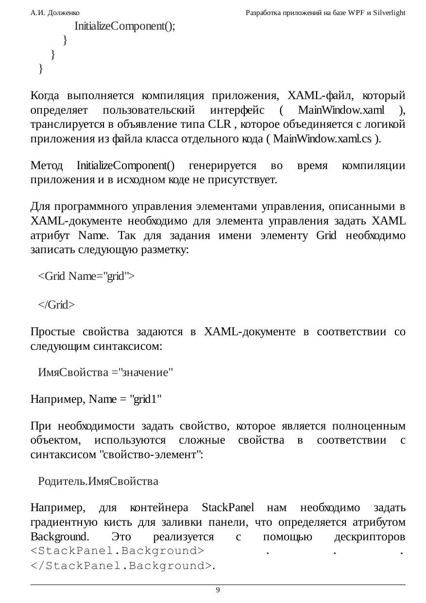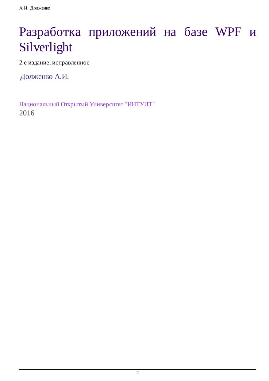 Разработка приложений на базе WPF и Silverlight