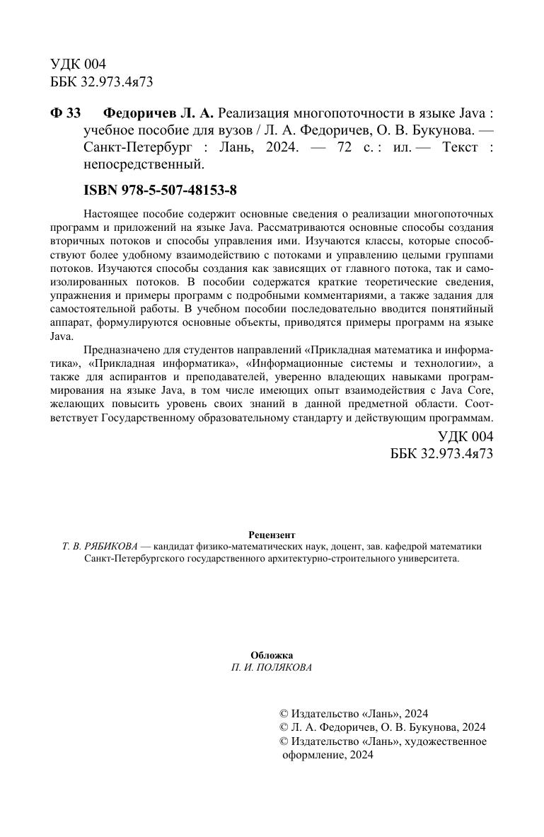 Настоящее пособие содержит основные сведения о реализации многопоточных программ и приложений на языке Java. Рассматриваются основные способы создания вторичных потоков и способы управления ими. Изучаются классы, которые способствуют более удобному взаимодействию с потоками и управлению целыми группами потоков. Изучаются способы создания как зависящих от главного потока, так и самоизолированных потоков. В пособии содержатся краткие теоретические сведения, упражнения и примеры программ с подробными комментариями, а также задания для самостоятельной работы. В учебном пособии последовательно вводится понятийный аппарат, формулируются основные объекты, приводятся примеры программ на языке Java. Предназначено для студентов направлений «Прикладная математика и информатика», «Прикладная информатика», «Информационные системы и технологии», а также для аспирантов и преподавателей, уверенно владеющих навыками программирования на языке Java, в том числе имеющих опыт взаимодействия с Java Core, желающих повысить уровень своих знаний в данной предметной области. Соответствует Государственному образовательному стандарту и действующим программам.