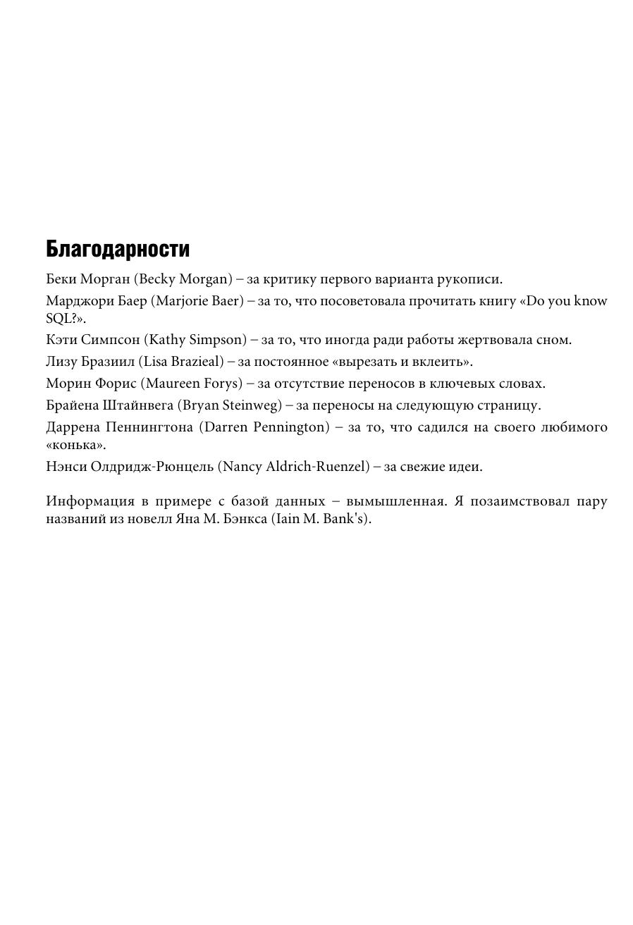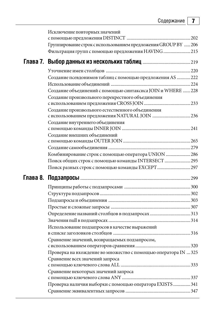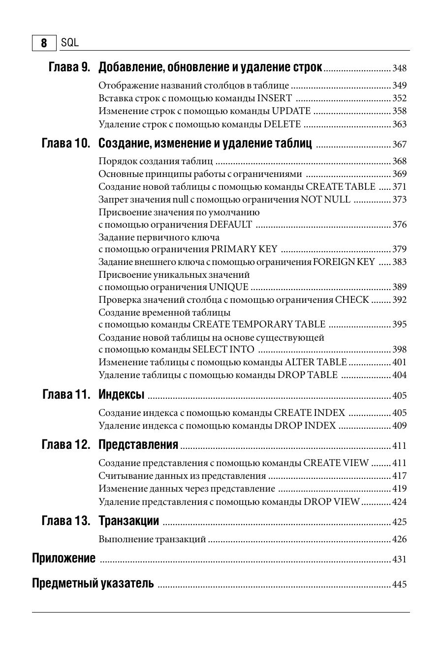 Книга посвящена языку программирования SQL, применяемому для работы с реляционными базами данных. Обсуждается версия языка ANSI SQL-92 (SQL2). В настоящем издании рассказывается об использовании запросов SQL для решения соответствующих классов задач по выборке данных, их модификации или по работе с объектами структуры базы данных. Все конструкции подробно описываются и иллюстрируются большим количеством примеров. Кроме того, для каждого типа запросов рассматриваются отклонения от стандарта в реализации наиболее распространенных СУБД: MS Access, MS SQL Server, Oracle, MySQL и PostgreSQL. Книга предназначена всем тем, кто желает самостоятельно изучить язык SQL или усовершенствовать свои знания по этой теме.