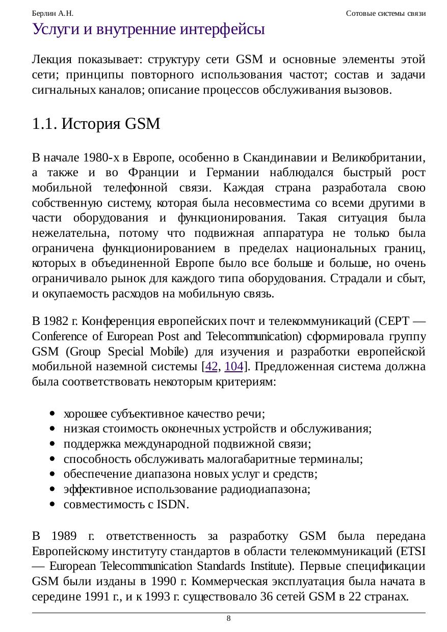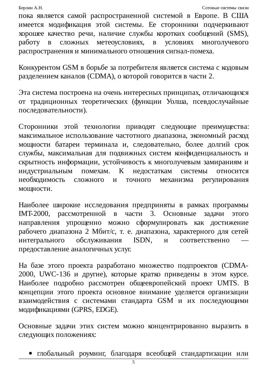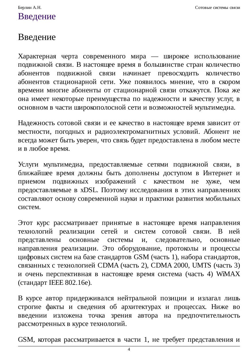 В курсе излагаются принципы построения и функционирования основных систем сотовой связи, которые работают сегодня на сети России. Это системы на основе стандартов GSM, CDMA. Системы следующих поколений - это UMTS, WiMAX (стандарт IEEE 802/16e). Рассматриваются архитектура, протоколы и основные алгоритмы работы (регистрация, хэендовер, аутентификация и др.). Особое внимание уделено системам и методам доступа: многостанционном с кодовым разделением (CDMA),