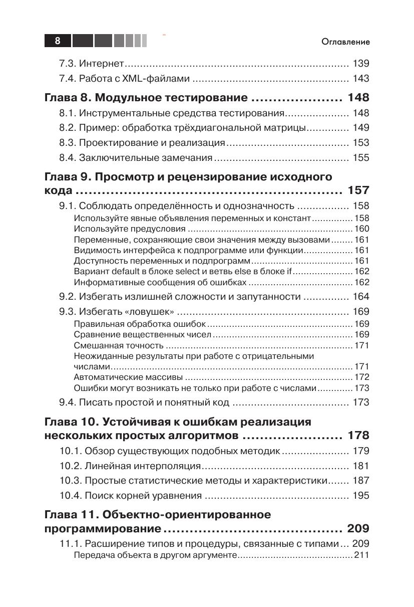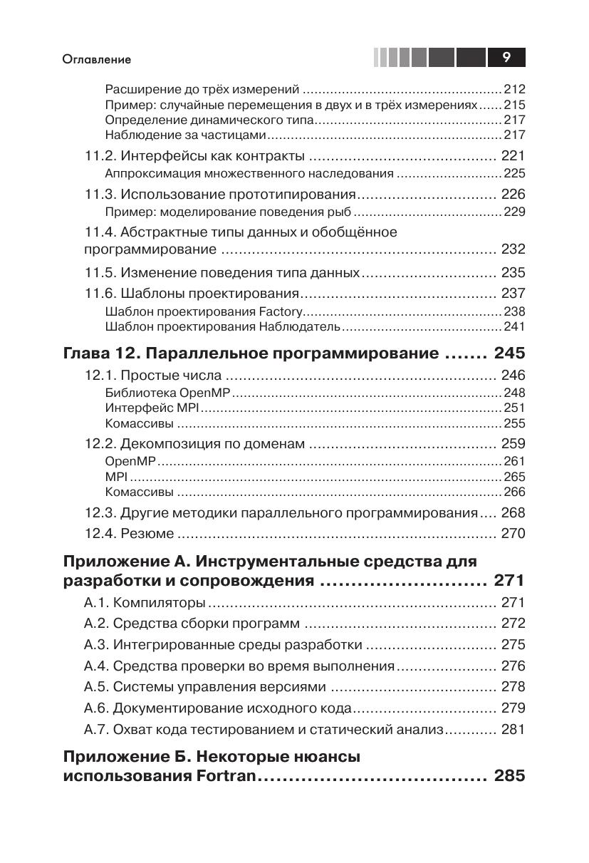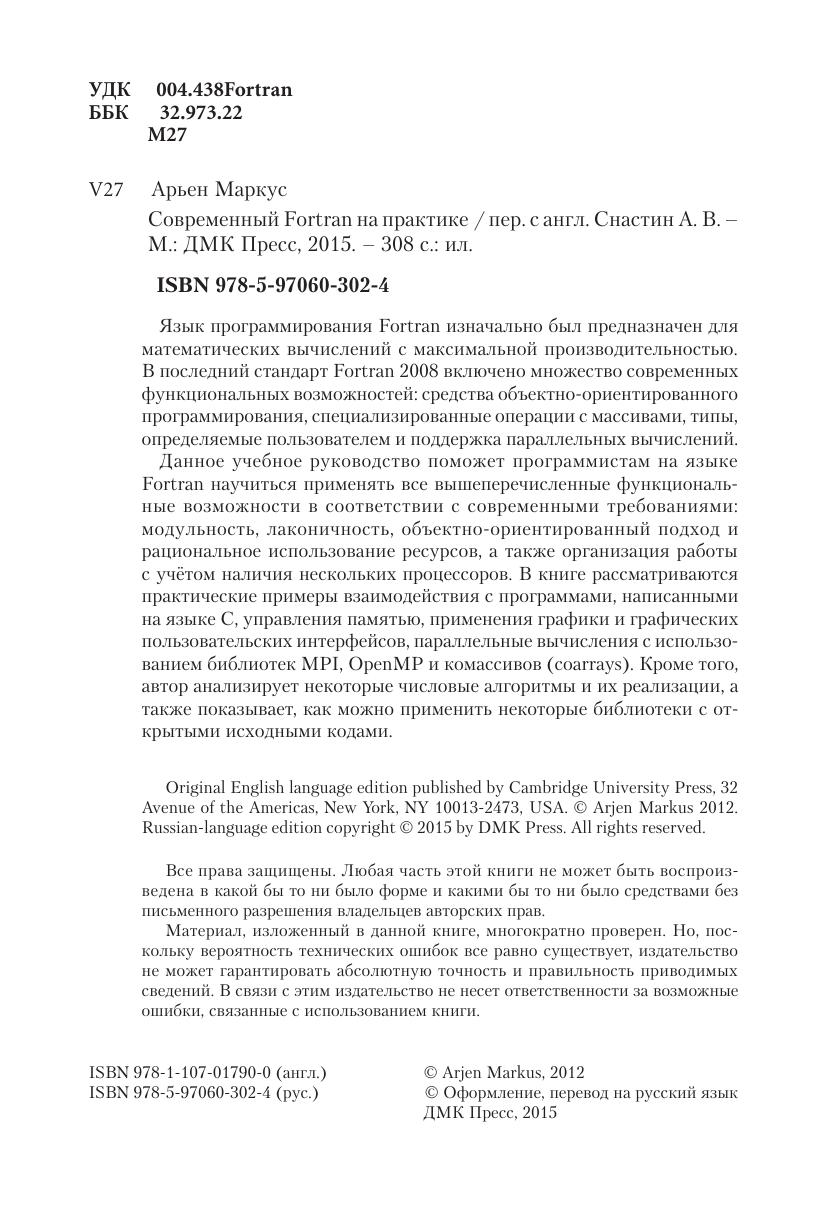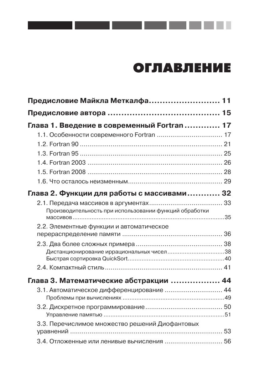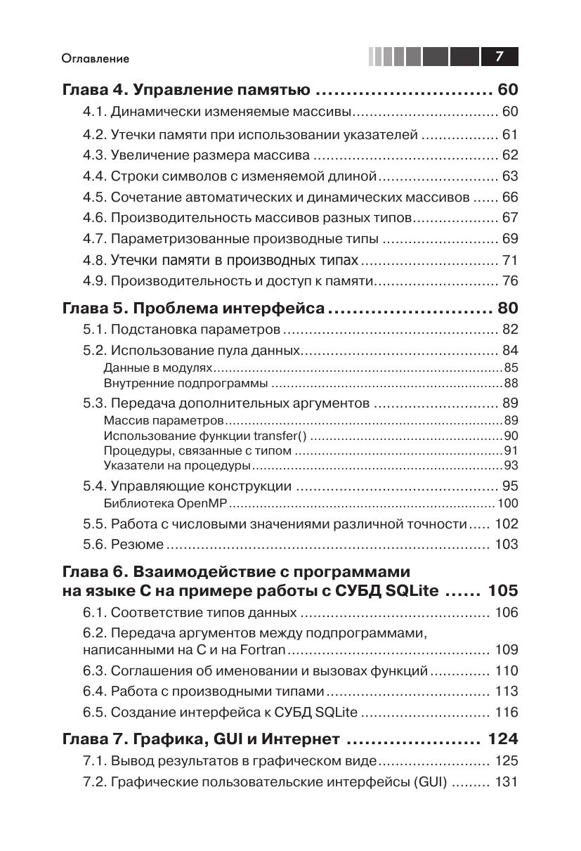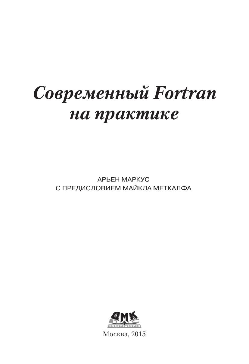 Язык программирования Fortran изначально был предназначен для математических вычислений с максимальной производительностью. В последний стандарт Fortran 2008 включено множество современных функциональных возможностей: средства объектно-ориентированного программирования, специализированные операции с массивами, типы, определяемые пользователем и поддержка параллельных вычислений. Данное учебное руководство поможет программистам на языке Fortran научиться применять все вышеперечисленные функциональные возможности в соответствии с современными требованиями: модульность, лаконичность, объектно-ориентированный подход и рациональное использование ресурсов, а также организация работы с учётом наличия нескольких процессоров. В книге рассматриваются практические примеры взаимодействия с программами, написанными на языке C, управления памятью, применения графики и графических пользовательских интерфейсов, параллельные вычисления с использованием библиотек MPI, OpenMP и комассивов (coarrays). Кроме того, автор анализирует некоторые числовые алгоритмы и их реализации, а также показывает, как можно применить некоторые библиотеки с открытыми исходными кодами
