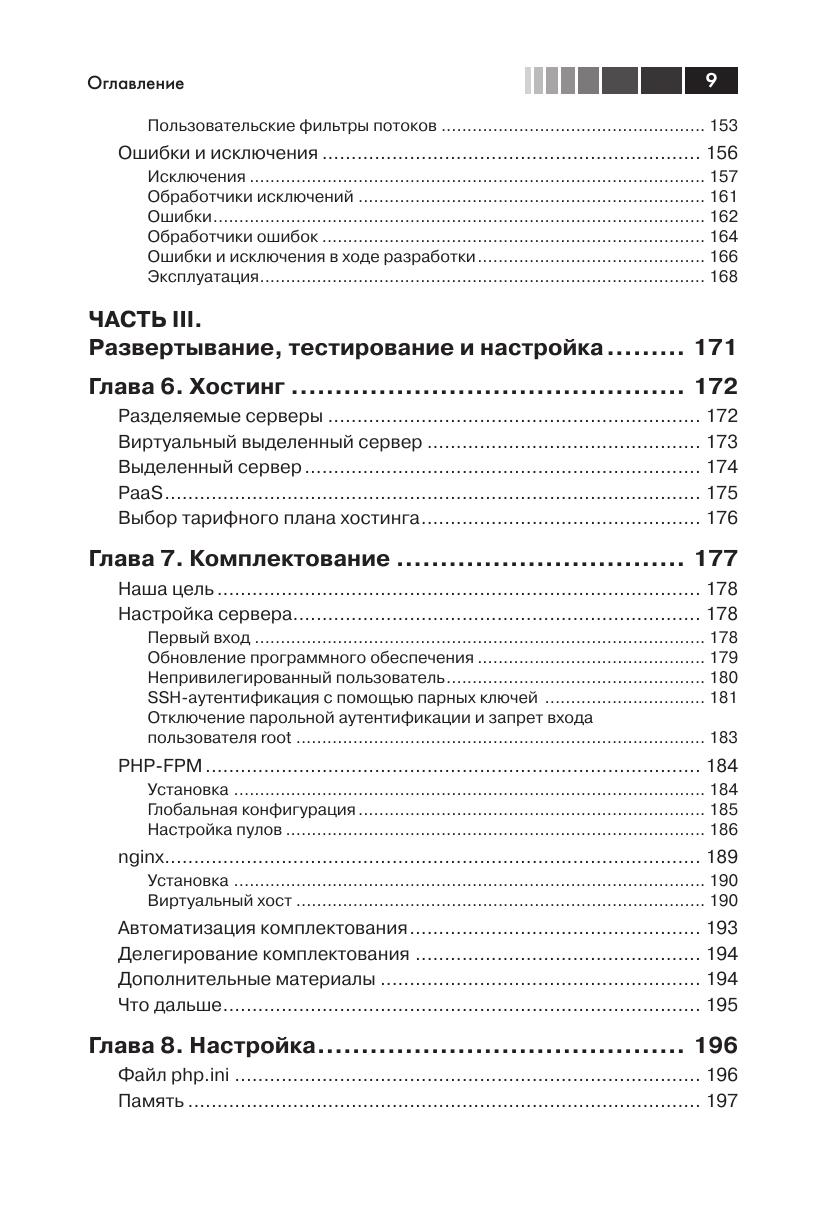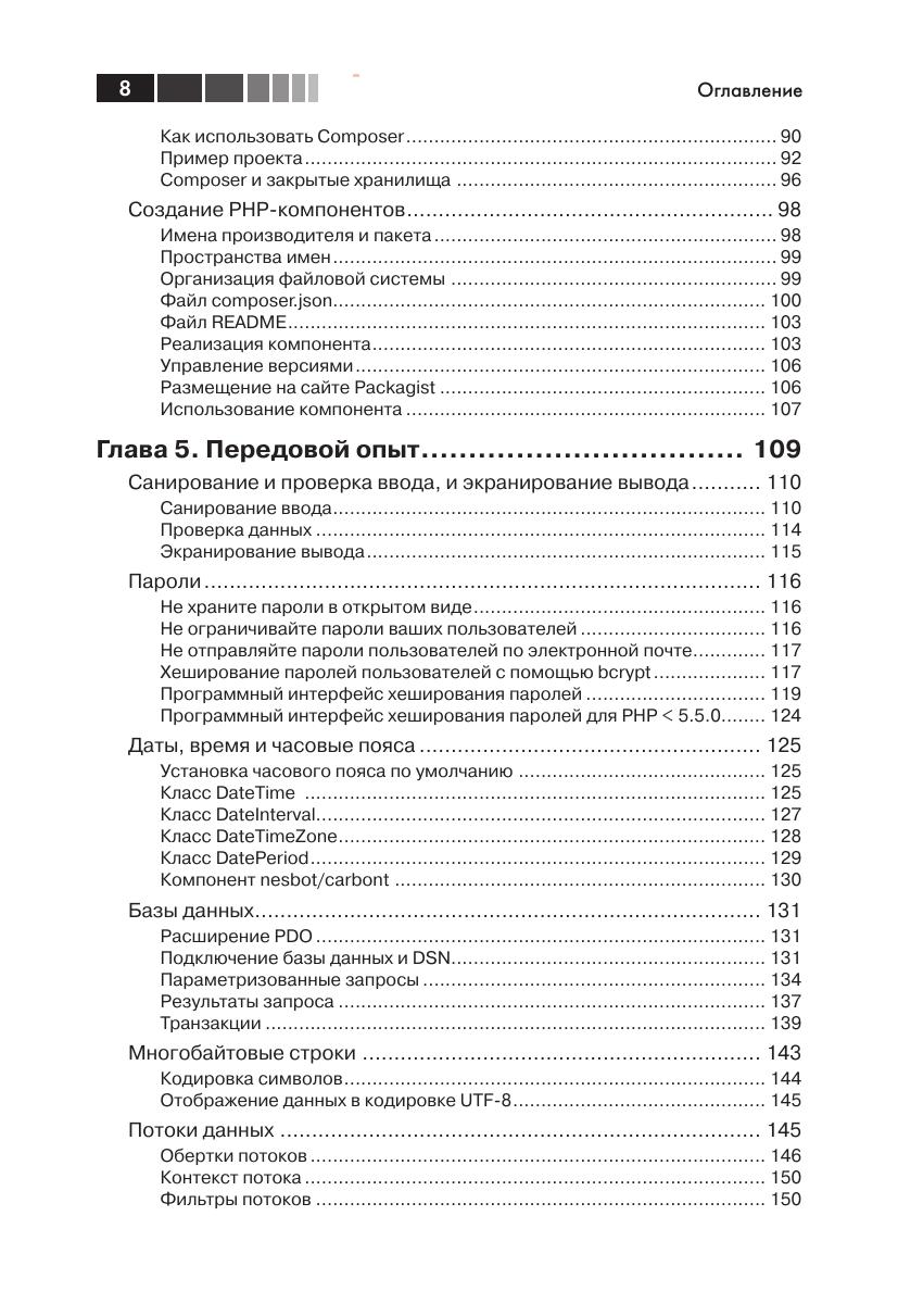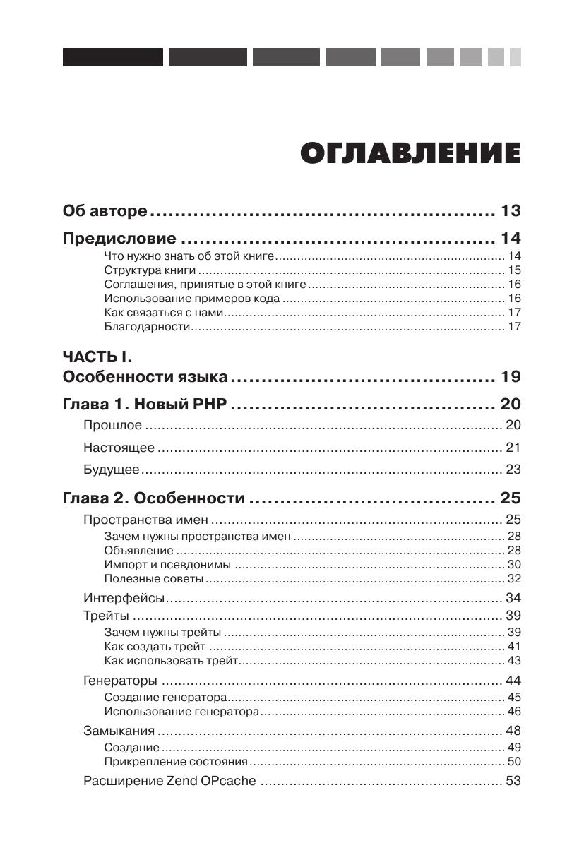 Из книги вы узнаете, как PHP превратился в зрелый полнофункциональный объектно-ориентированный язык, с пространствами имени постоянно растущей коллекцией библиотек компонентов. Автор демонстрирует новые возможности языка на практике. Вы узнаете о передовых методах проектирования и конструирования приложений, работы с базами данных, обеспечения безопасности, тестирования, отладки и развертывания. Если вы уже знакомы с языком PHP и желаете расширить свои знания о нем, то эта книга для вас!