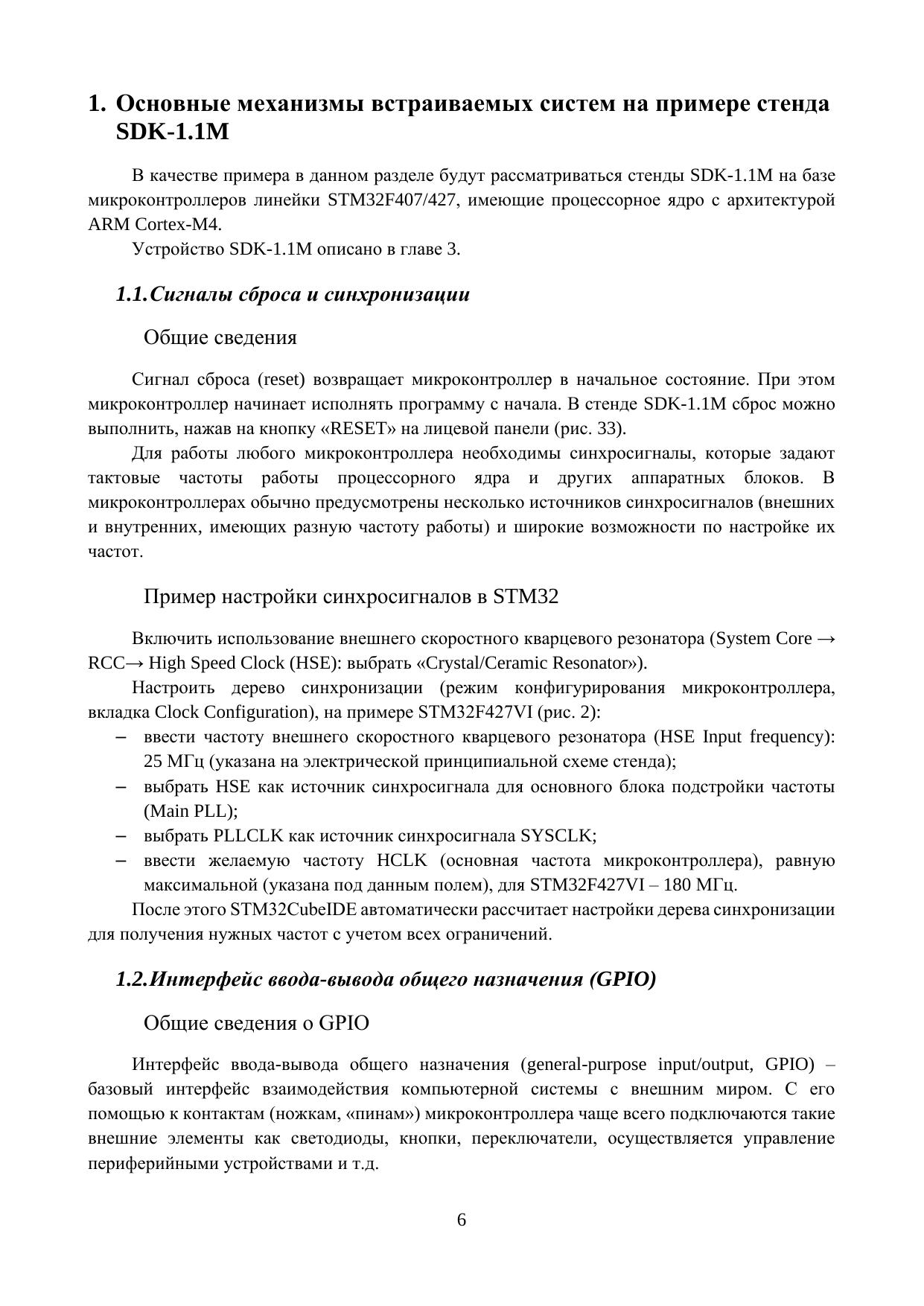 Учебное пособие предназначено для демонстрации базовых аппаратных и программных механизмов современных встраиваемых вычислительных систем с помощью стенда-конструктора SDK-1.1M. Рассматриваются вопросы устройства микроконтроллеров и их составных элементов на примере современных устройств семейства STM32. Обсуждается организация типовых интерфейсов ввода-вывода и внешних устройств (датчиков, микросхем памяти, расширителей портов ввода-вывода и др.), приемы разработки драйверов и прикладных программ.