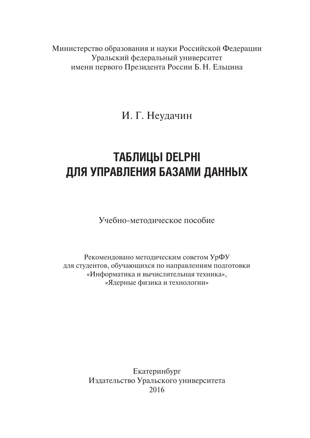 Таблицы Delphi для управления базами данных: учеб.-метод. пособие