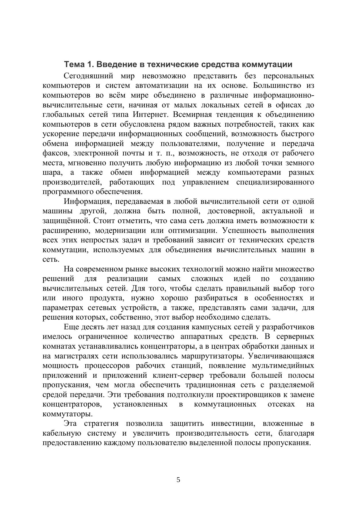 В учебном пособии описаны: терминология, технологии коммутации, технологическая реализация коммутаторов, характеристики коммутаторов, модели сетевого взаимодействия, обзор технических средств коммутации второго и третьего уровней, основные, дополнительные функции коммутаторов.