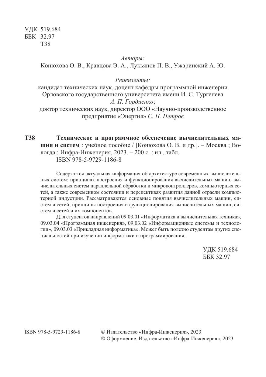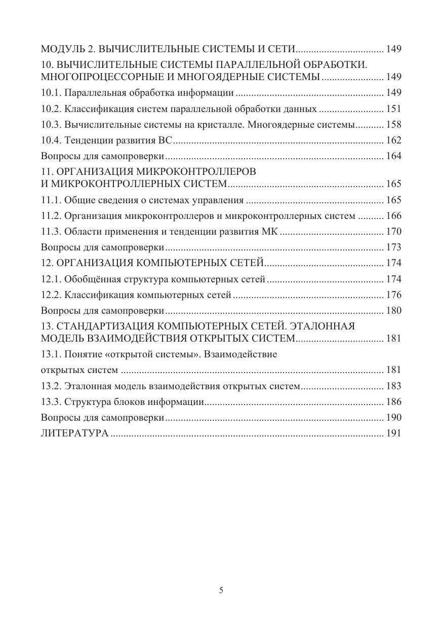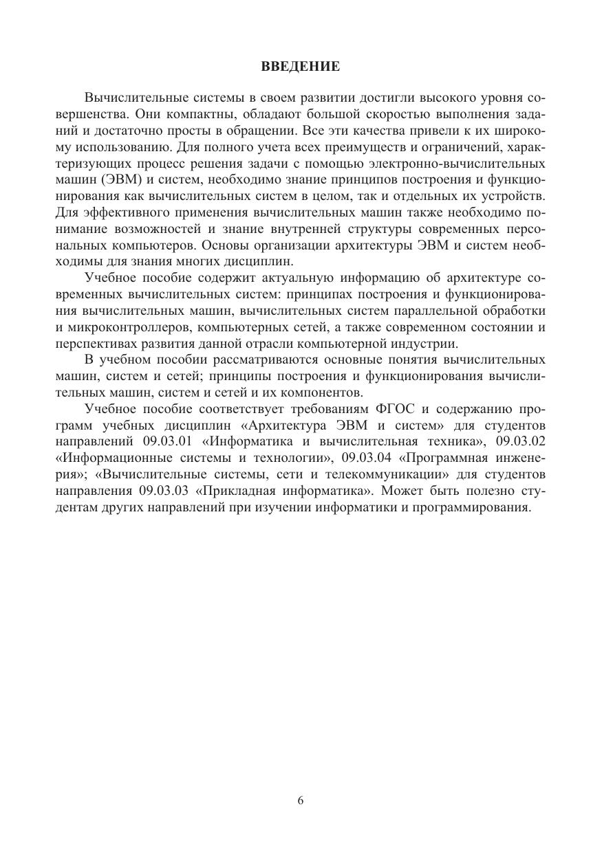 Содержится актуальная информация об архитектуре современных вычислительных систем: принципах построения и функционирования вычислительных машин, вычислительных систем параллельной обработки и микроконтроллеров, компьютерных сетей, а также современном состоянии и перспективах развития данной отрасли компьютерной индустрии. Рассматриваются основные понятия вычислительных машин, систем и сетей; принципы построения и функционирования вычислительных машин, систем и сетей и их компонентов.