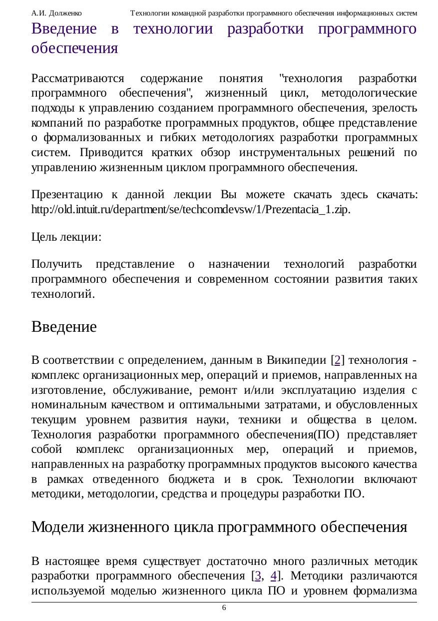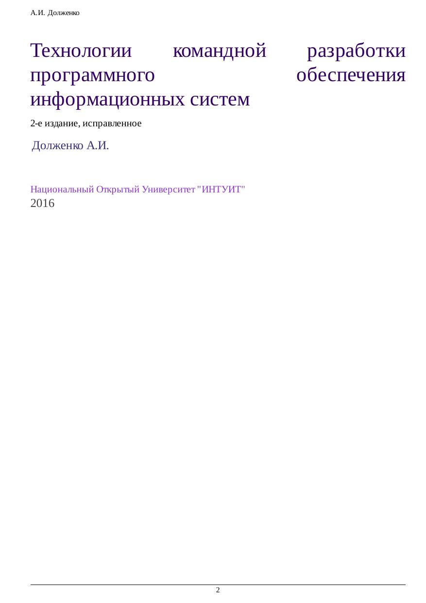 Технологии командной разработки программного обеспечения информационных систем