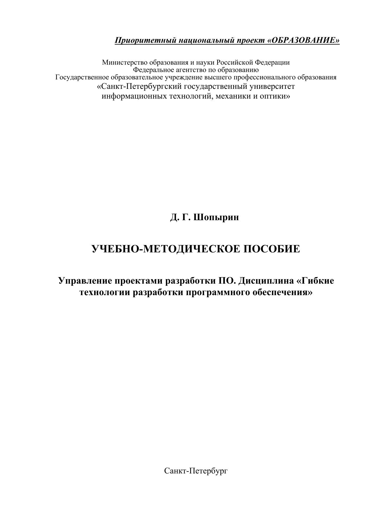 Управление проектами разработки ПО. Дисциплина «Гибкие технологии разработки программного обеспечения»