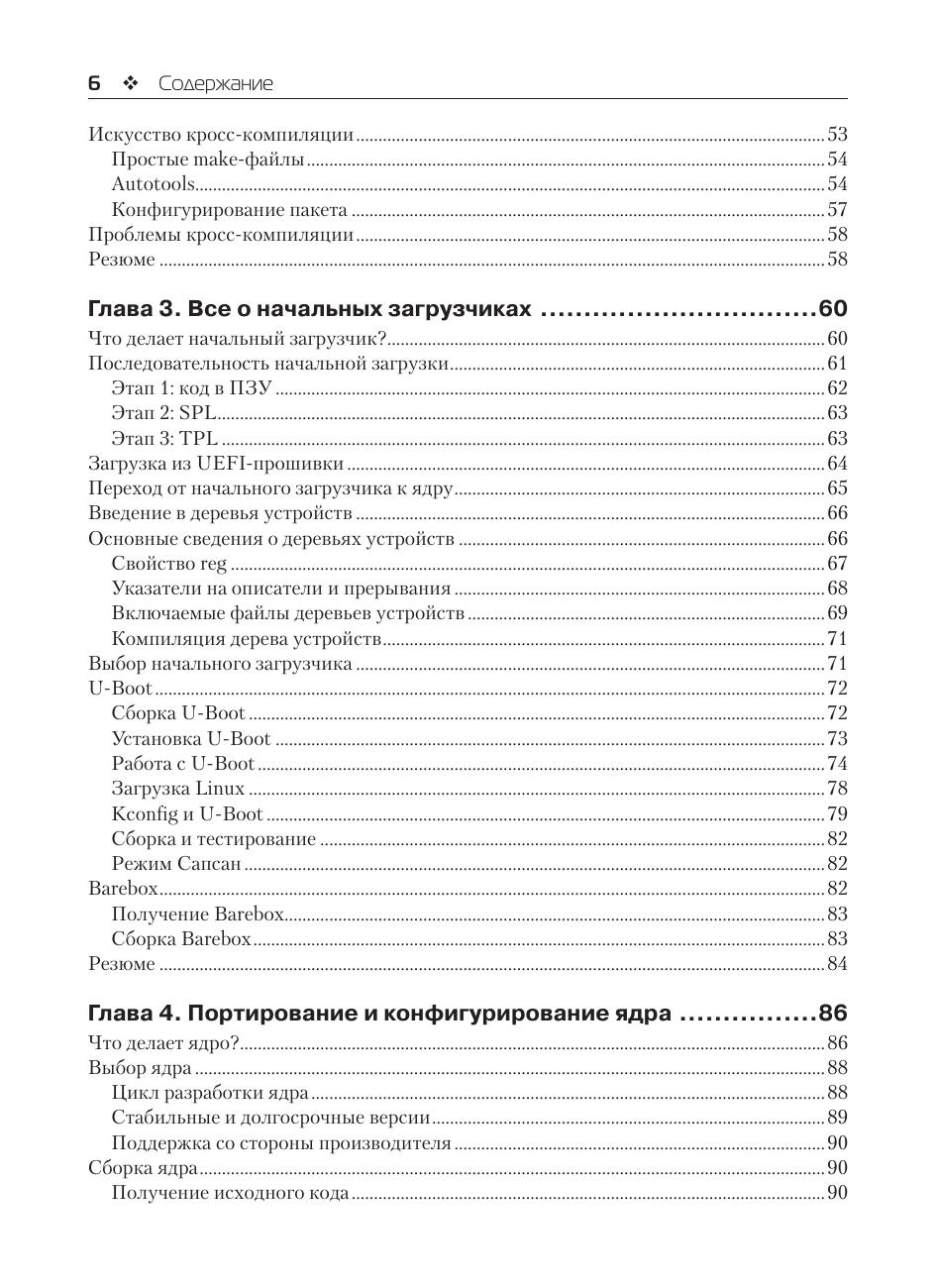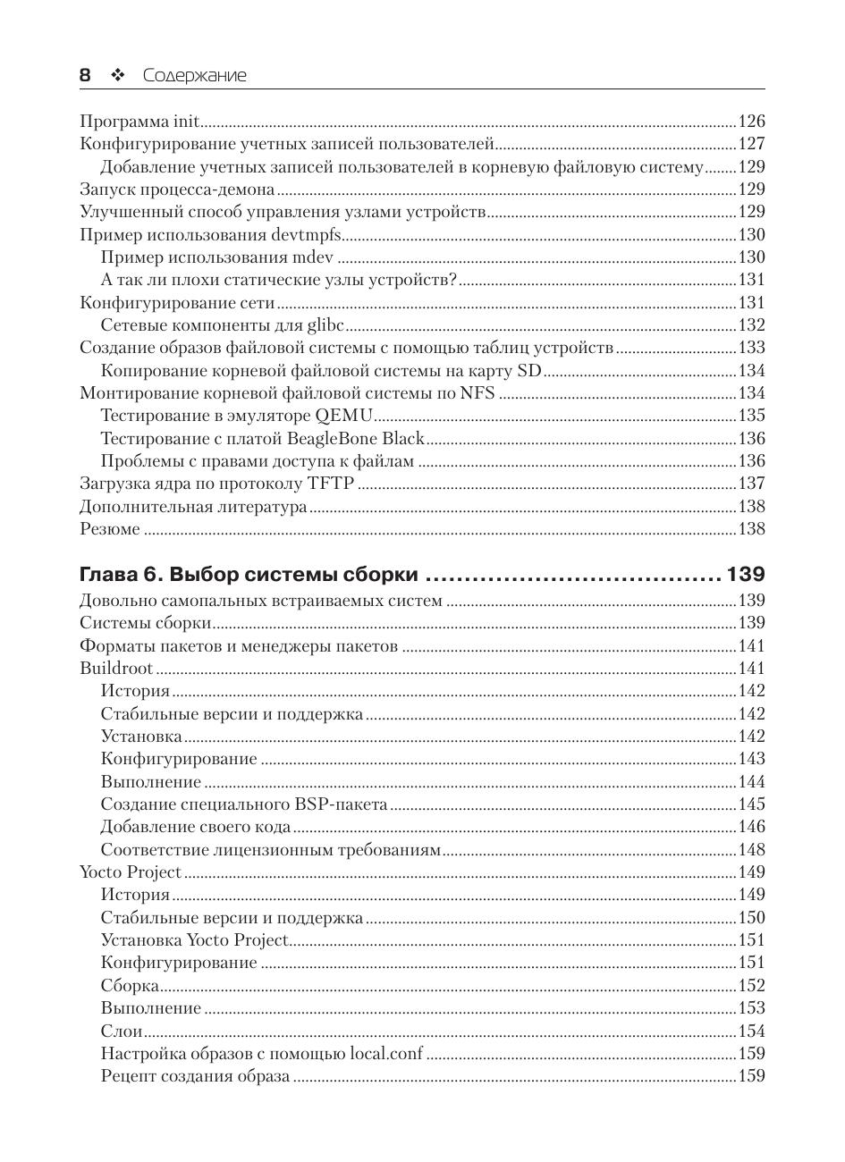 В книге подробно рассказано о том, как сконструировать встраиваемую Linux-систему из свободных программ с открытым исходным кодом, получив в результате надежный и эффективный продукт. Рассмотрены наборы инструментов, начальные загрузчики, ядро Linux и конфигурирование корневой файловой системы. Показано, как работать с системами сборки Buildroot и Yocto Project. Описаны процессы, потоки и управление памятью. Не обделены вниманием вопросы отладки и оптимизации платформы, а также выполнение приложений реального времени. Издание рассчитано на разработчиков программного обеспечения на платформе Linux и системных программистов, уже знакомых со встраиваемыми системами. Предполагаются знание основ языка C и опыт системного программирования.