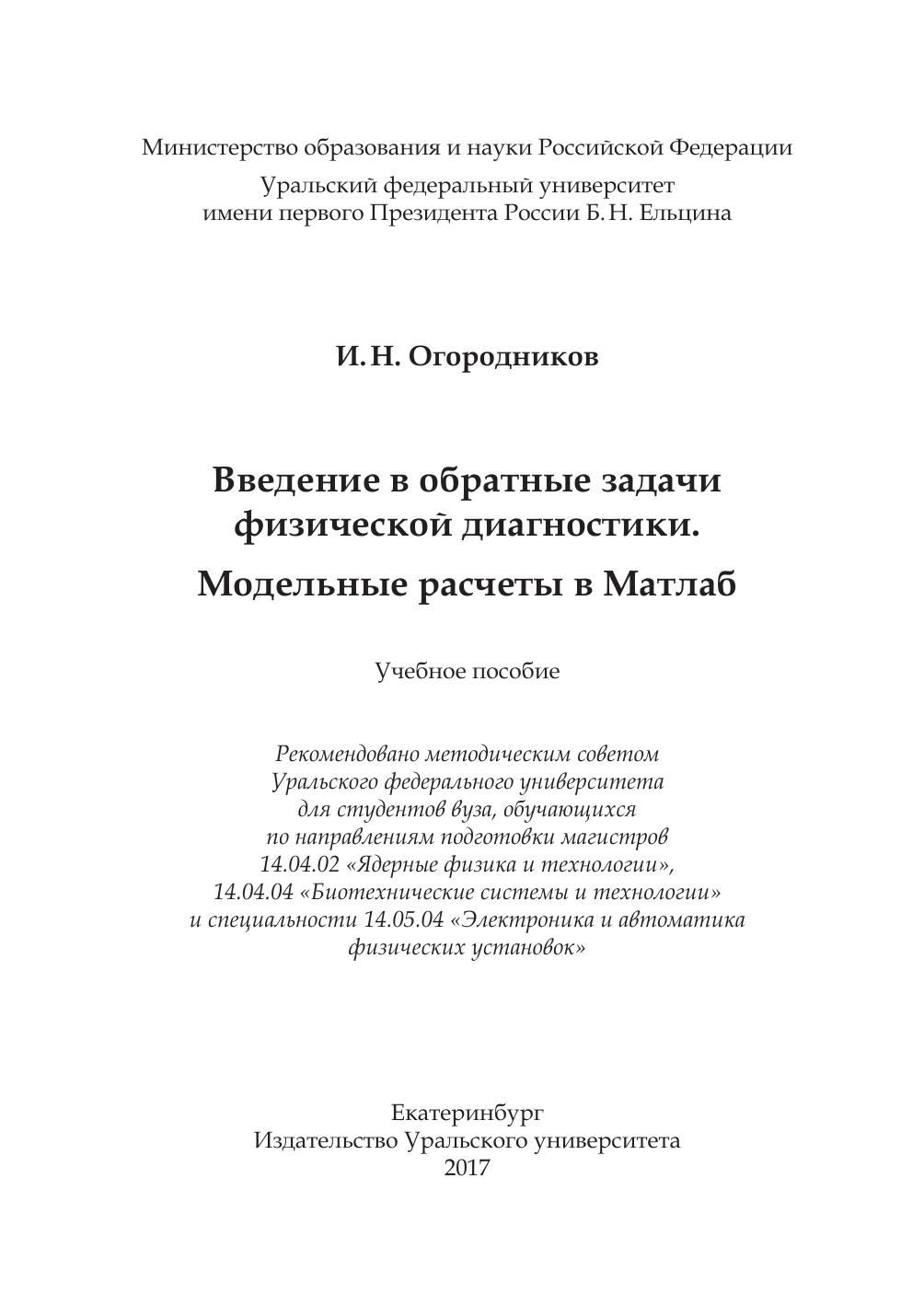 Введение в обратные задачи физической диагностики. Модельные расчеты в Матлаб