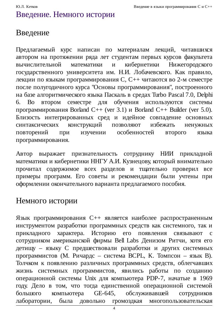 Курс написан по материалам лекций, читавшихся автором на протяжении ряда лет студентам первых курсов факультета вычислительной математики и кибернетики Нижегородского государственного университета им. Н.И. Лобачевского. В курсе рассматриваются все основные конструкции и элементы языков программирования C и C++.