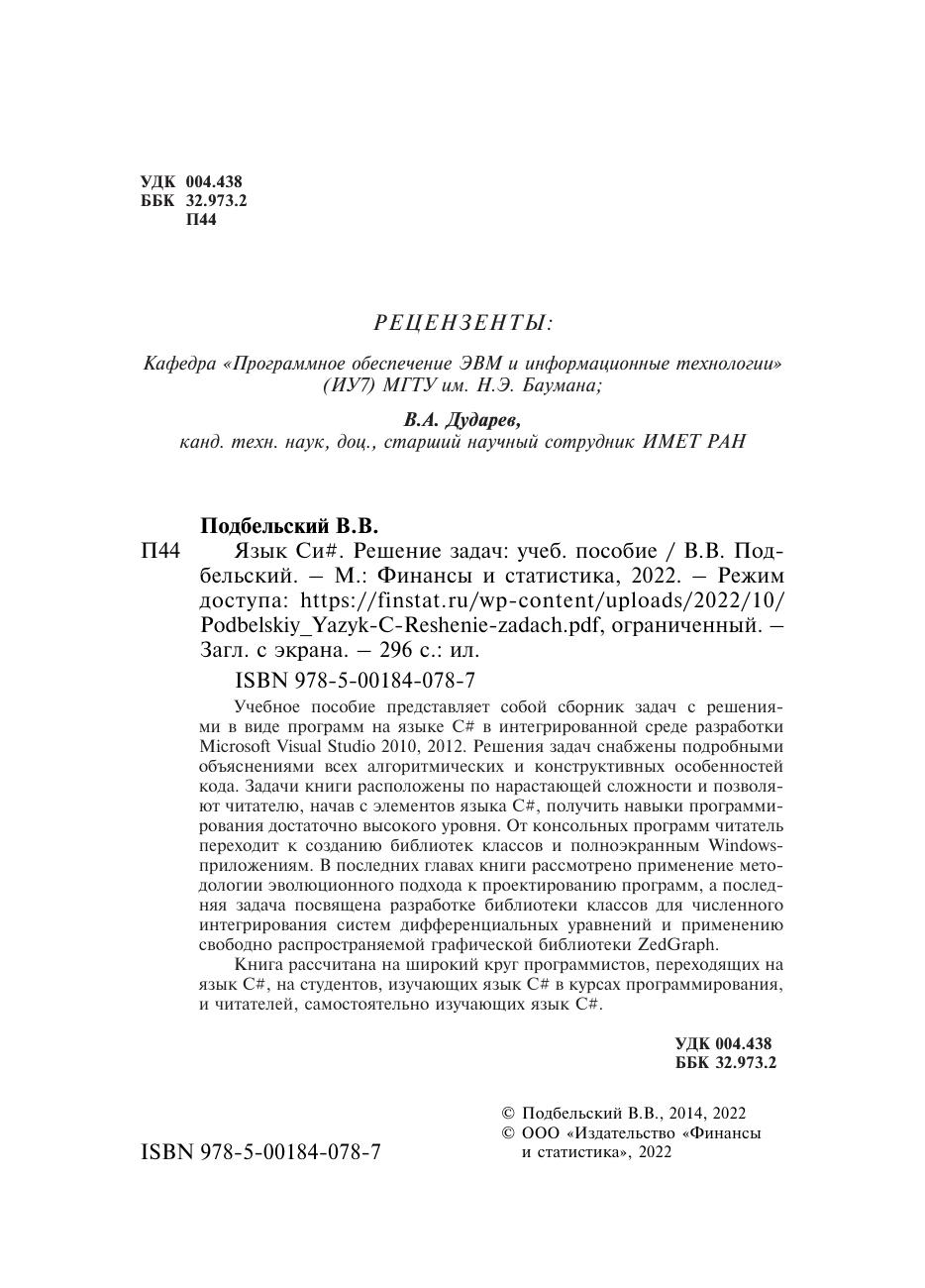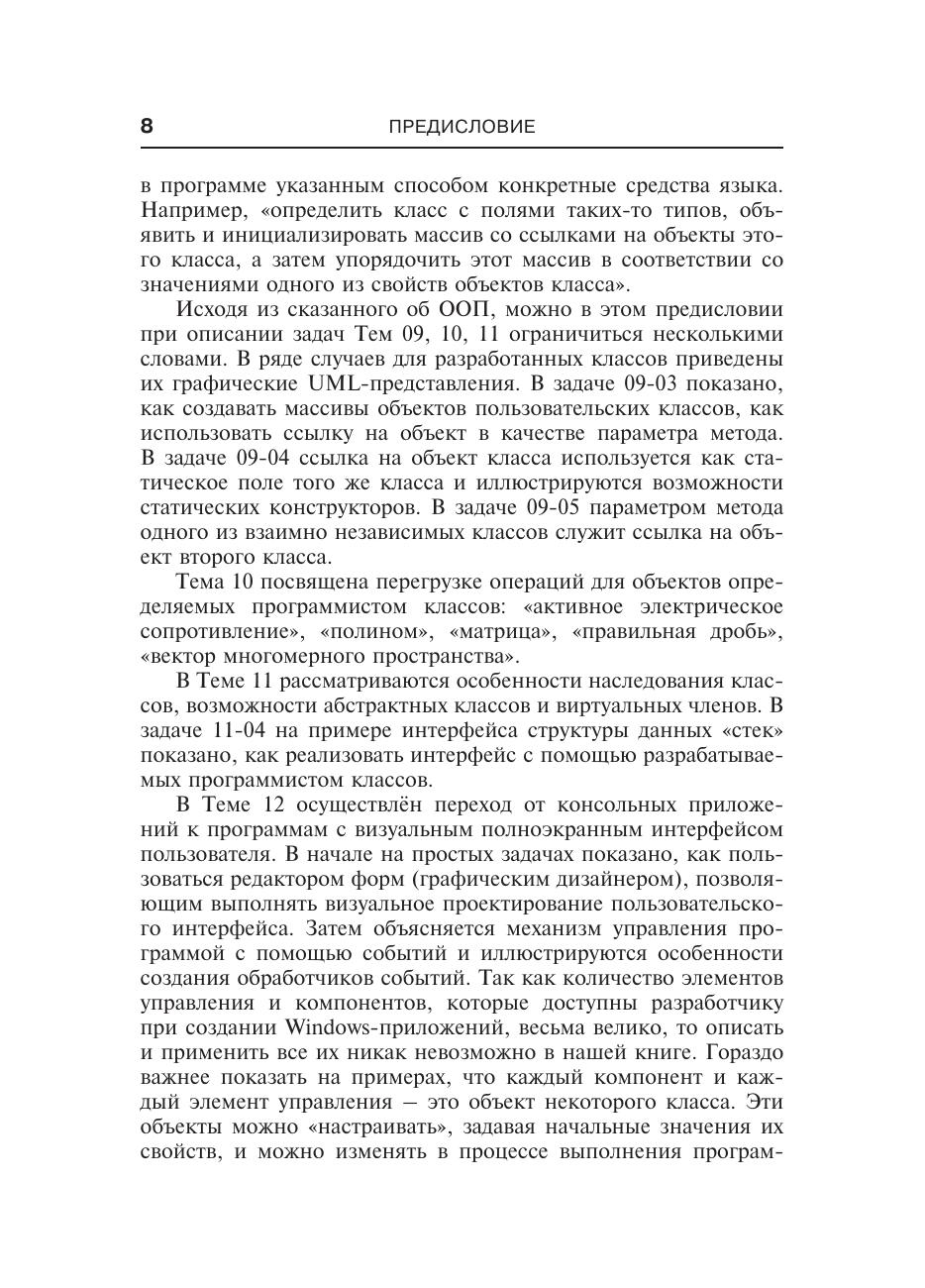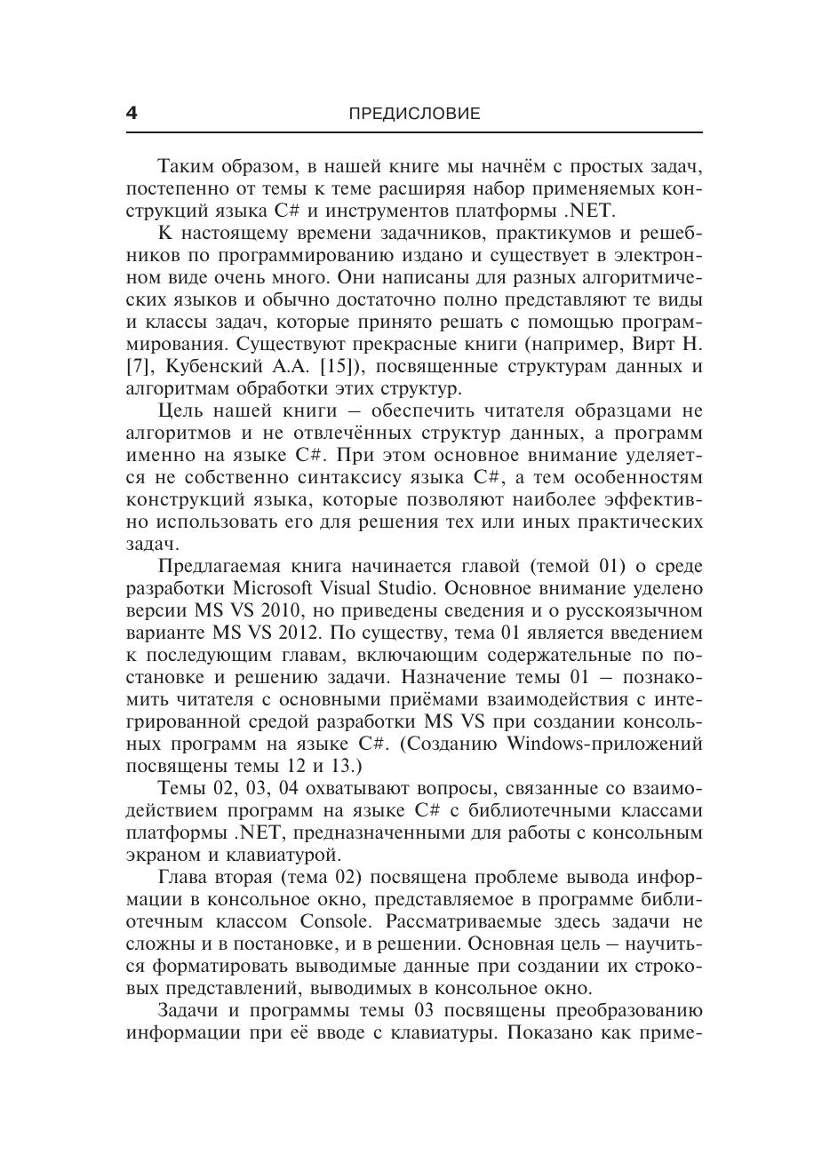 Книга рассчитана на широкий круг программистов, переходящих на язык C#, на студентов, изучающих язык C# в курсах программирования, и читателей, самостоятельно изучающих язык С#.