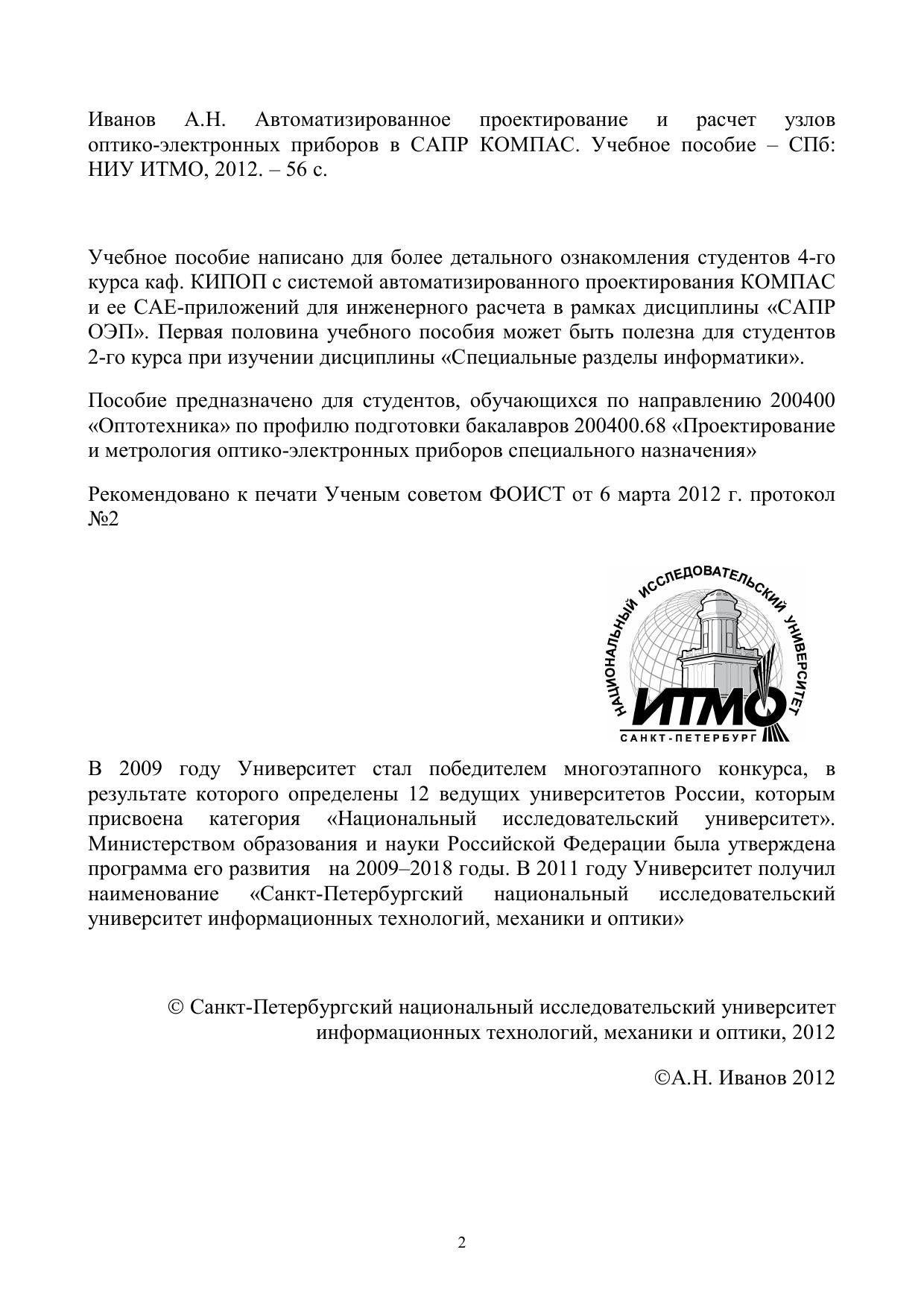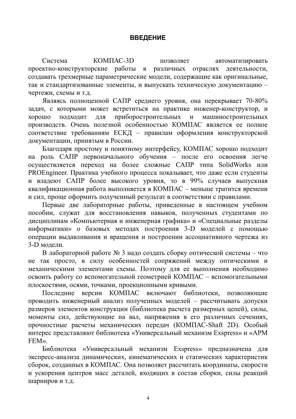Учебное пособие написано для более детального ознакомления студентов 4-го курса каф. КИПОП с системой автоматизированного проектирования КОМПАС и ее CAE-приложений для инженерного расчета в рамках дисциплины «САПР ОЭП».