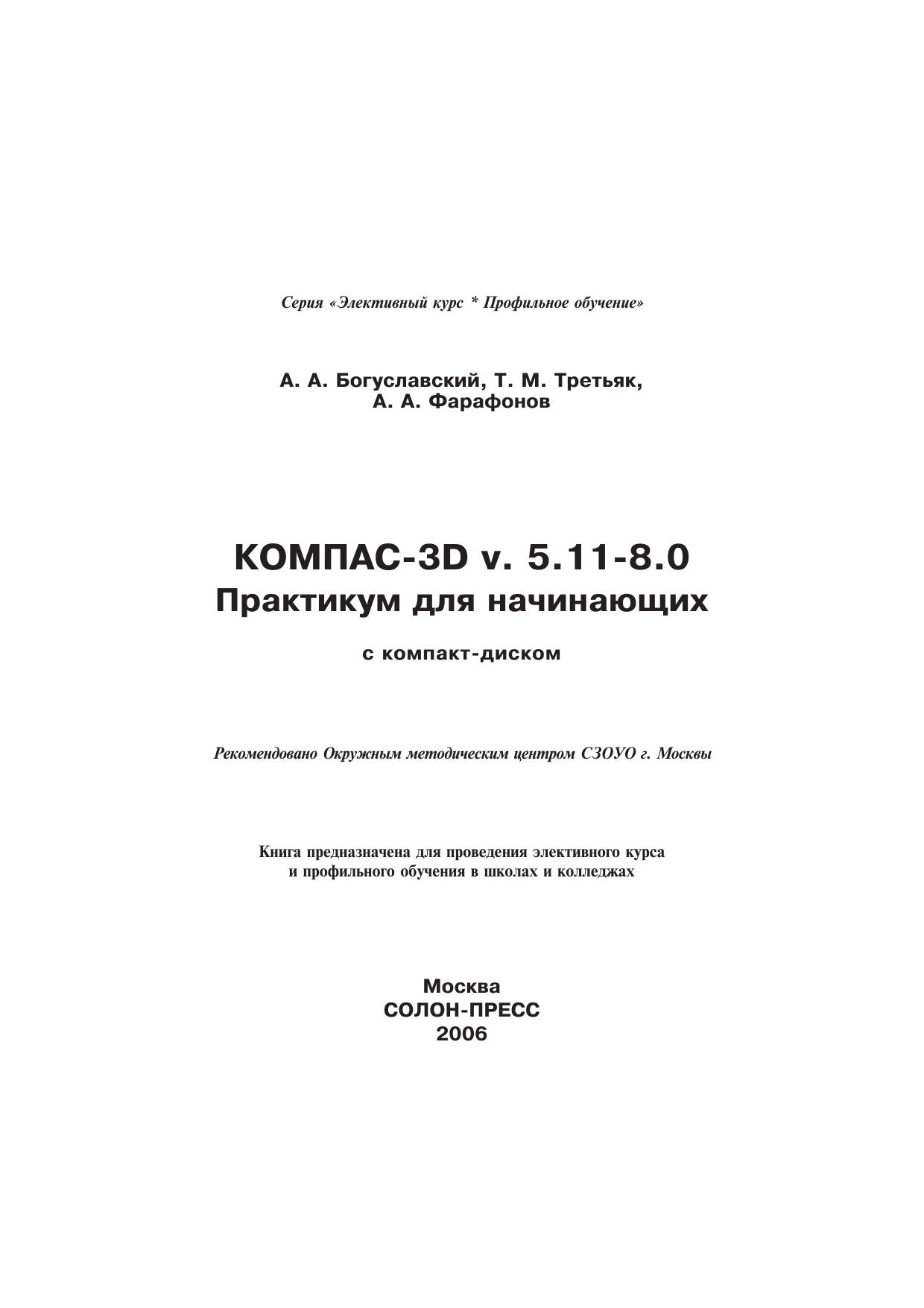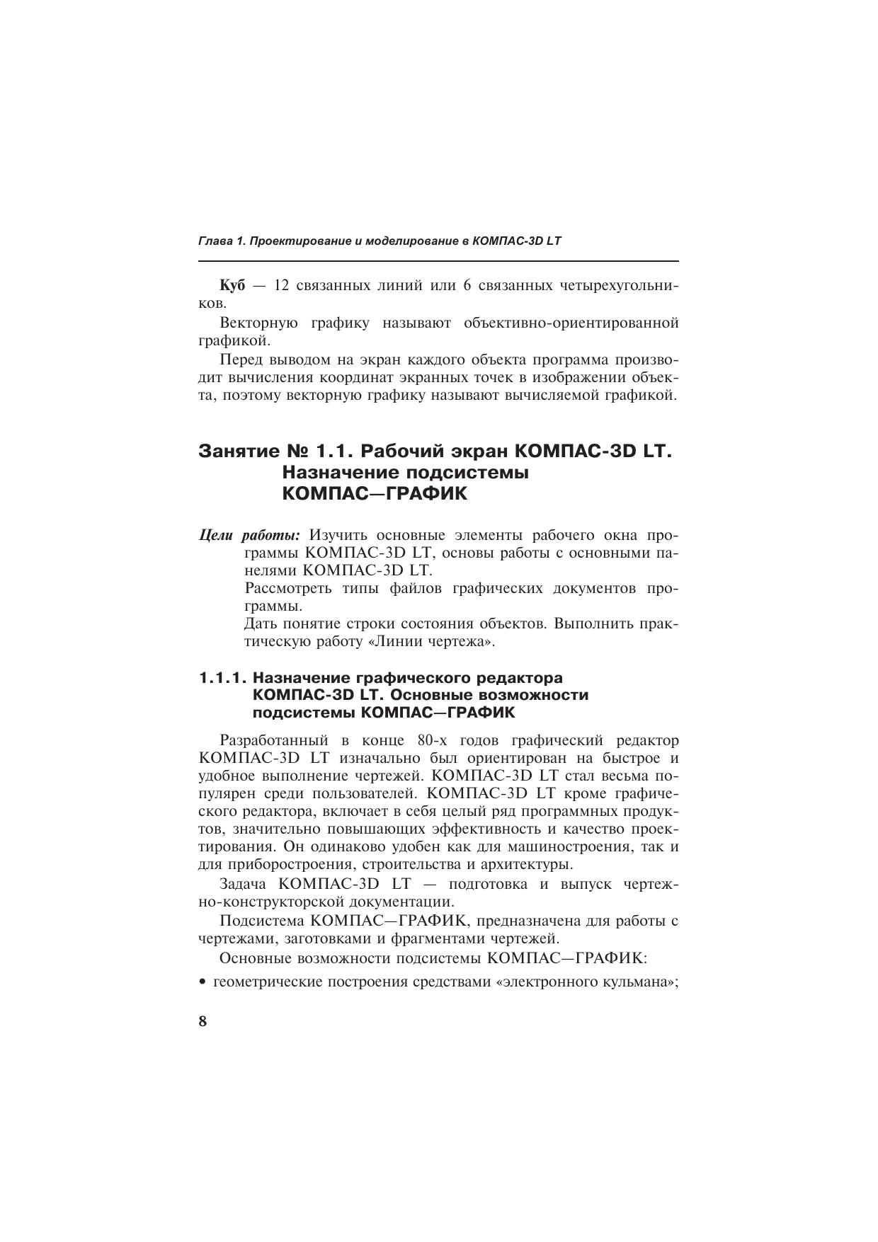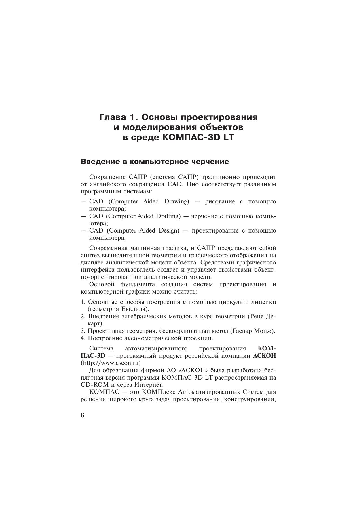 Эта книга — учебное пособие для тех, кто хочет быстро освоить проектирование и моделирование с помощью компьютера. Данное пособие является руководством, которое последовательно шаг за шагом будет улучшать ваше понимание процесса создания «компьютерного чертежа» на плоскости и в пространстве. Материал книги представлен в виде занятий с практическими заданиями, содержащими подробные алгоритмы их выполнения. Для преподавателей и методистов предоставлен подробный учебно-тематический план. Занятия построены таким образом, что читатель может шаг за шагом самостоятельно пройти все этапы проектирования и трехмерного моделирования. Основное содержание книги составляют практические примеры, подробно описанные и снабженные множеством иллюстраций. Необходимые основные теоретические сведения приводятся в виде кратких и понятных терминов. Такой подход к изложению материала позволяет без труда найти решение многих задач по проектированию в среде КОМПАС-3Б LT, изучить функционирование новых инструментов и освоить новые приемы работы с уже известными. В книге подробно описываются все основные возможности программы необходимые для самостоятельного проектирования и моделирования геометрических объектов и деталей. Первые две главы книги предназначены для моделирования объектов в среде КОМПАС-3Б LT V5, третья глава посвящена основам проектирования в версии КОМПАС-3Б LT V7.Книга предназначена читателям, желающим самостоятельно освоить и применить новые компьютерные технологии в современном проектировании. Материал, представленный в книге, будет полезен преподавателям информатики и ИТ, черчения, технологии школ, гимназий, лицеев, системы профессиональной подготовки.