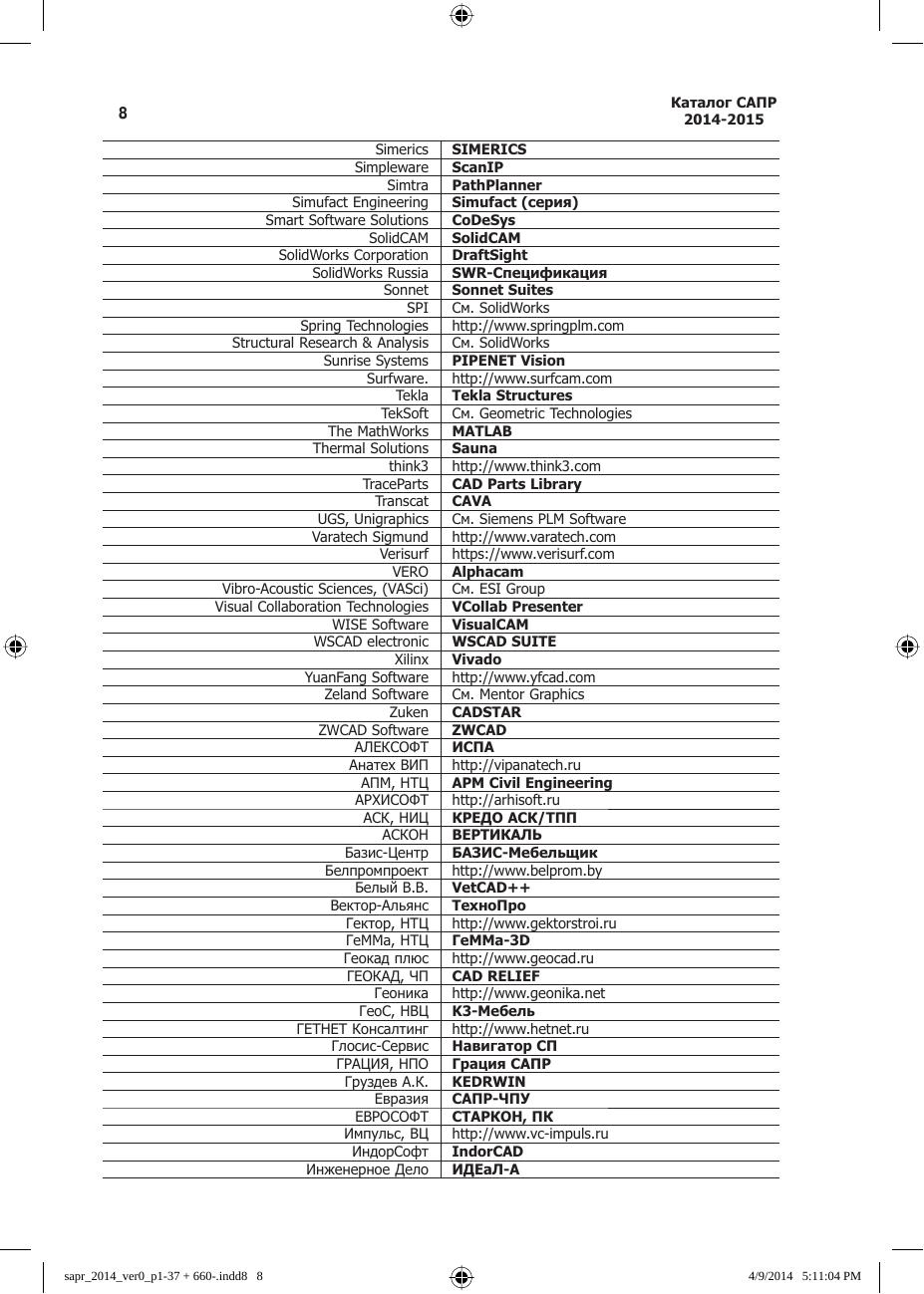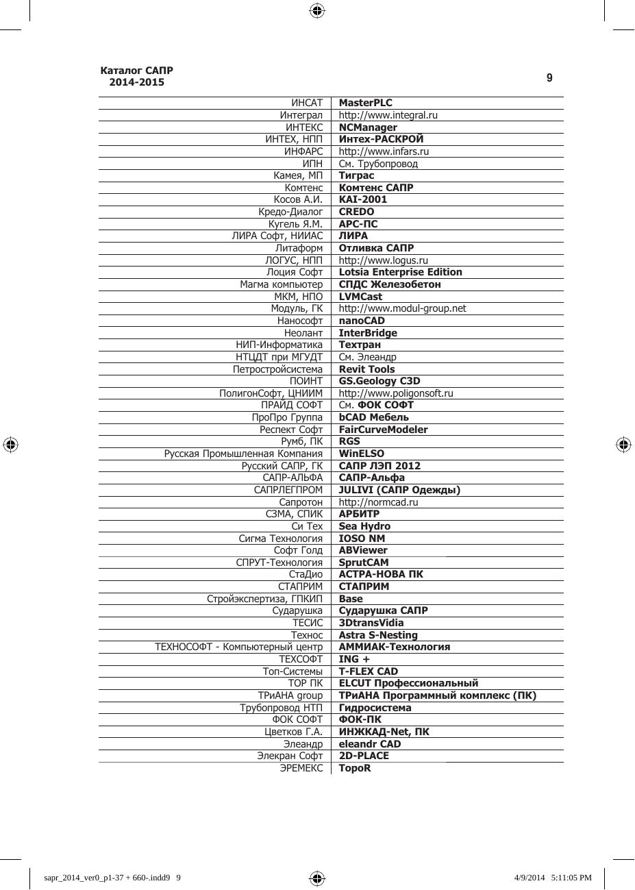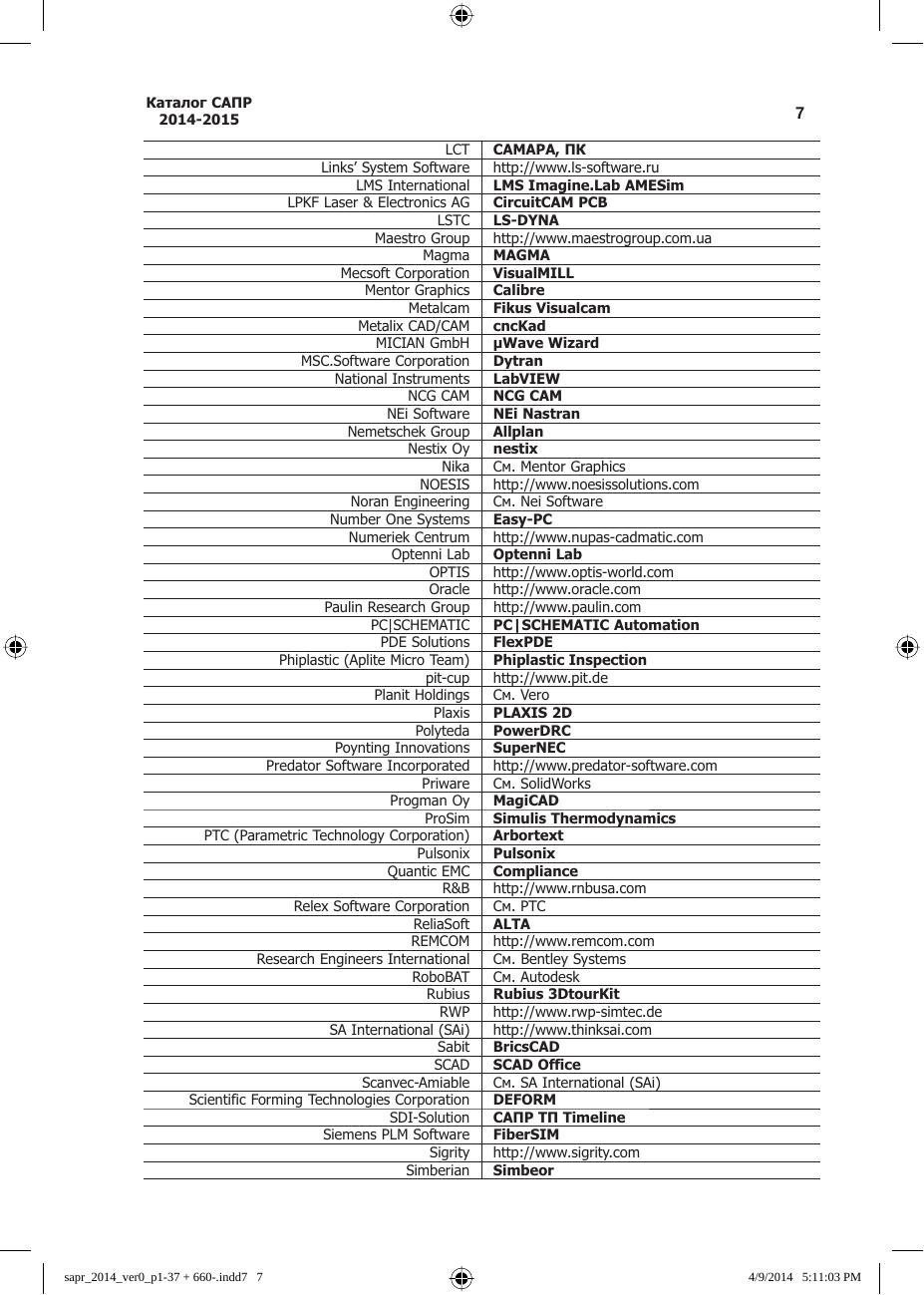 Каталог САПР. Программы и производители. 2014–2015