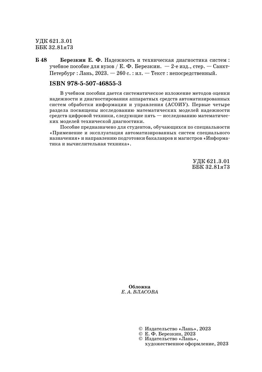 В учебном пособии дается систематическое изложение методов оценки надежности и диагностирования аппаратных средств автоматизированных систем обработки информации и управления (АСОИУ). Первые четыре раздела посвящены исследованию математических моделей надежности средств цифровой техники, следующие пять — исследованию математических моделей технической диагностики. Пособие предназначено для студентов, обучающихся по специальности «Применение и эксплуатация автоматизированных систем специального назначения» и направлению подготовки бакалавров и магистров «Информатика и вычислительная техника».