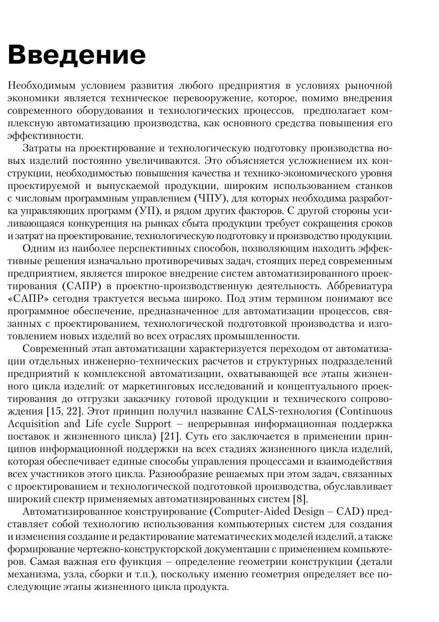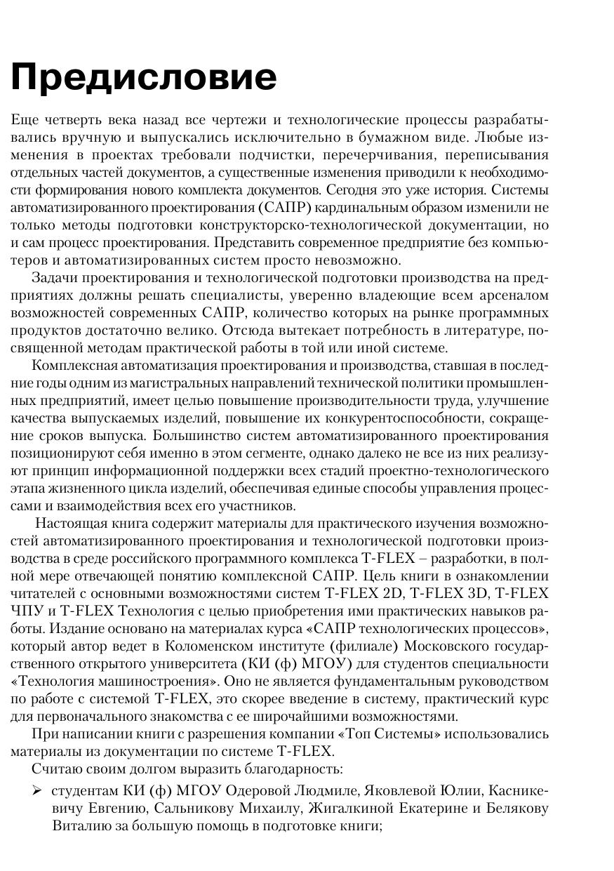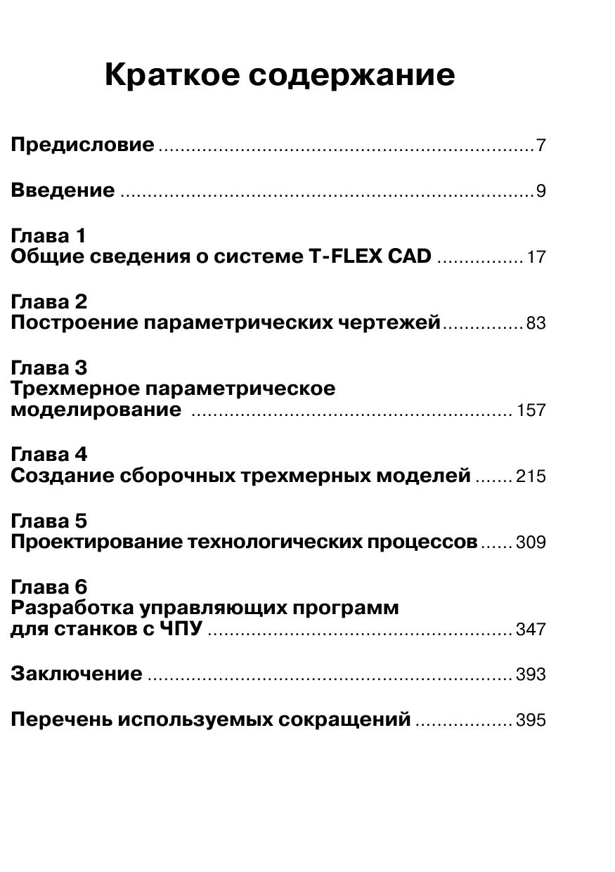 В книге рассматриваются вопросы сквозного проектирования изделий в системе T-FLEX, которая в максимальной степени отвечает понятию комплексной системы автоматизированного проектирования (САПР) среди всех отечественных разработок в этой области. Она включает в себя полностью интегрированные программные решения для автоматизации проектирования, выполнения инженерно-технических расчетов, технологической подготовки производства, включая формирование управляющих программ для станков с ЧПУ, организации управленческой деятельности на предприятии и электронного документооборота. Ключевой особенностью САПР T-FLEX является наличие простого и удобного аппарата создания параметрических моделей изделий любой сложности, для использования которого достаточно знания предметной области и навыков работы с программой. В доступной форме на примерах работы с реальными деталями рассмотрены вопросы формирования параметрических чертежей, построения трехмерных моделей деталей и сборочных единиц, разработки управляющих программ и проектирования технологических процессов обработки. Издание будет полезно всем специалистам, занимающимся проектированием и технологической подготовкой производства в различных отраслях промышленности, а также студентам высших и средних специальных учебных заведений, изучающим вопросы автоматизированного проектирования.