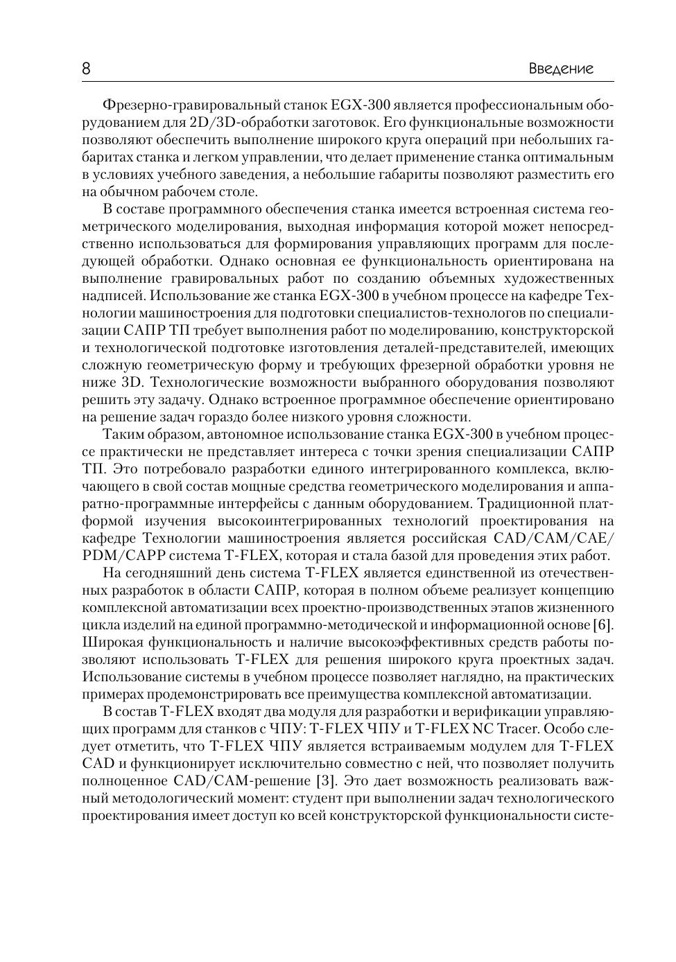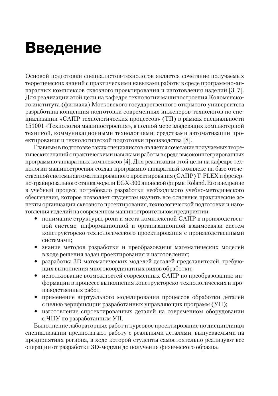 Учебное пособие содержит материалы для выполнения практических занятий по сквозному проектированию изделий машиностроения, начиная от создания математической модели в среде САПР T'FLEX и заканчивая изготовлением опытного образца на фрезерно-гравировальном станке EGX-300. Для студентов высших учебных заведений, обучающихся по специальности 151001 «Технология машиностроения», специализация «САПР технологических процессов». Будет полезна студентам средних специальных учебных заведений, а также преподавателям, работающим в области автоматизированного проектирования и технологической подготовки производства.