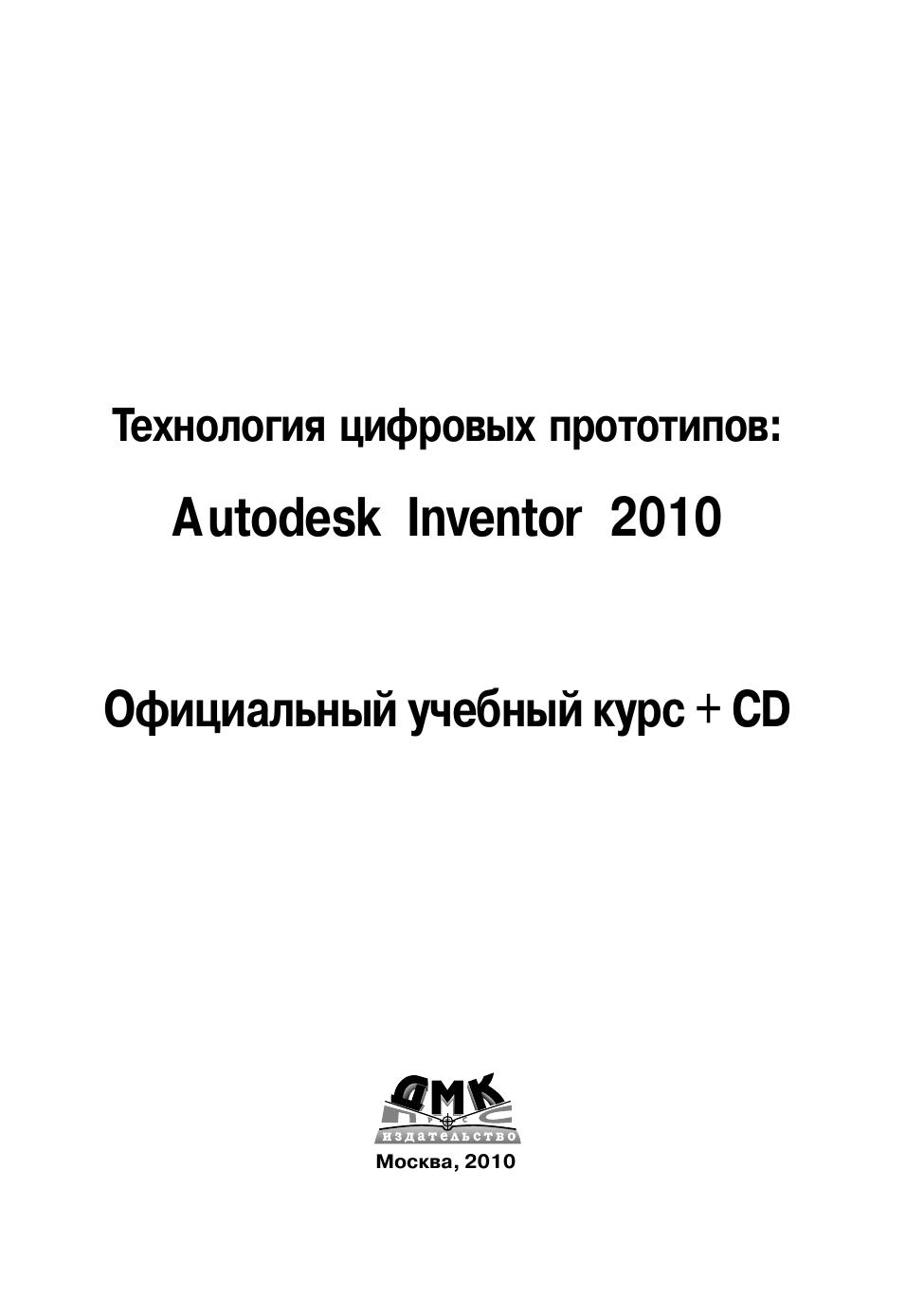 Технология цифровых прототипов: Autodesk Inventor 2010. Официальный учебный курс