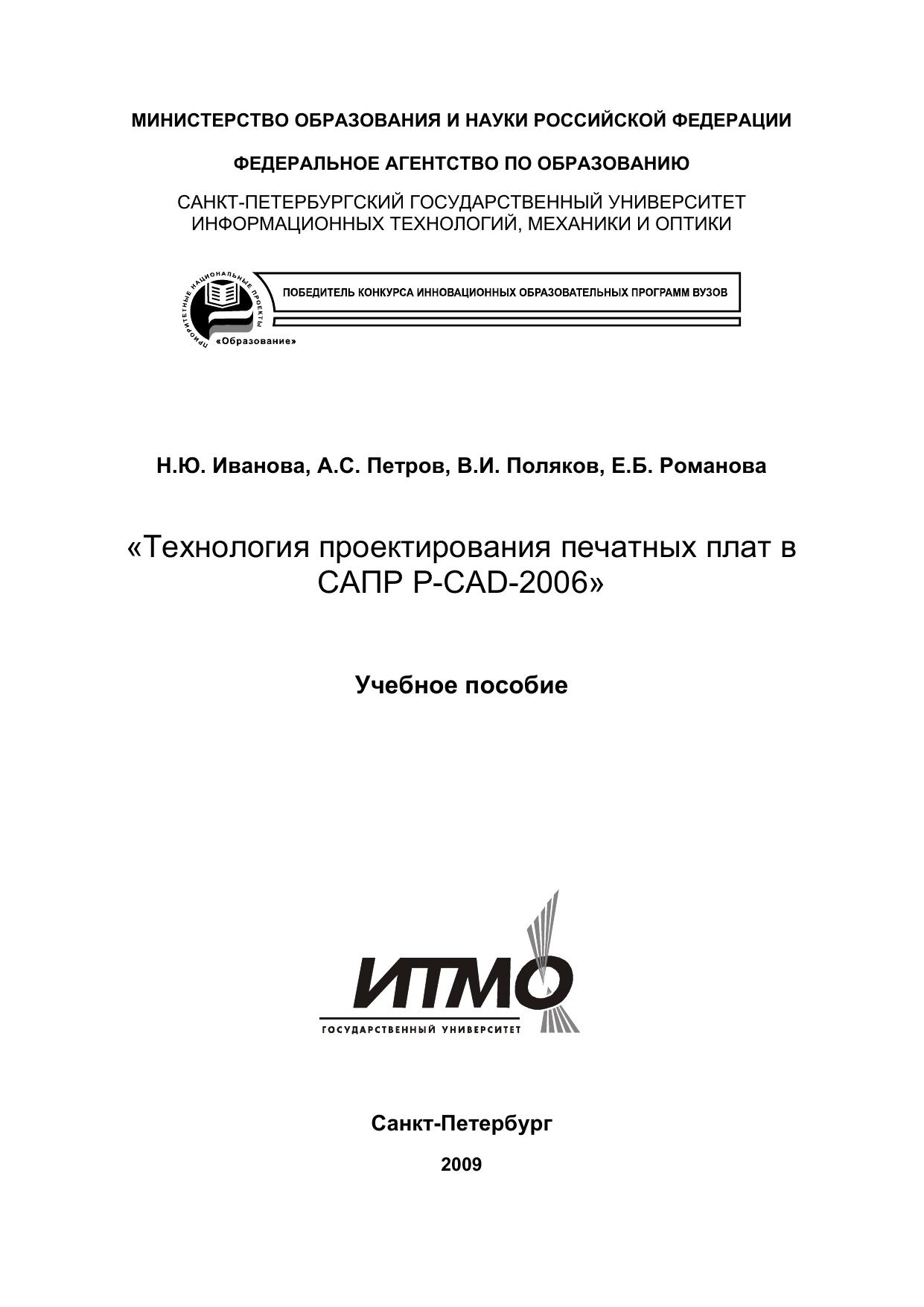В учебном пособии рассмотрены вопросы проектирования радиоэлектронных средств на базе новых информационных технологий. Даны основные сведения по структуре и эксплуатации промышленной системы автоматизированного проектирования (САПР) P-CAD-2006. В пособии изложены основные методики работы в САПР P-CAD-2006. Представлены методические рекомендации по выполнению цикла лабораторных работ и курсовому проектированию. Приведен пример выполнения курсового проекта.