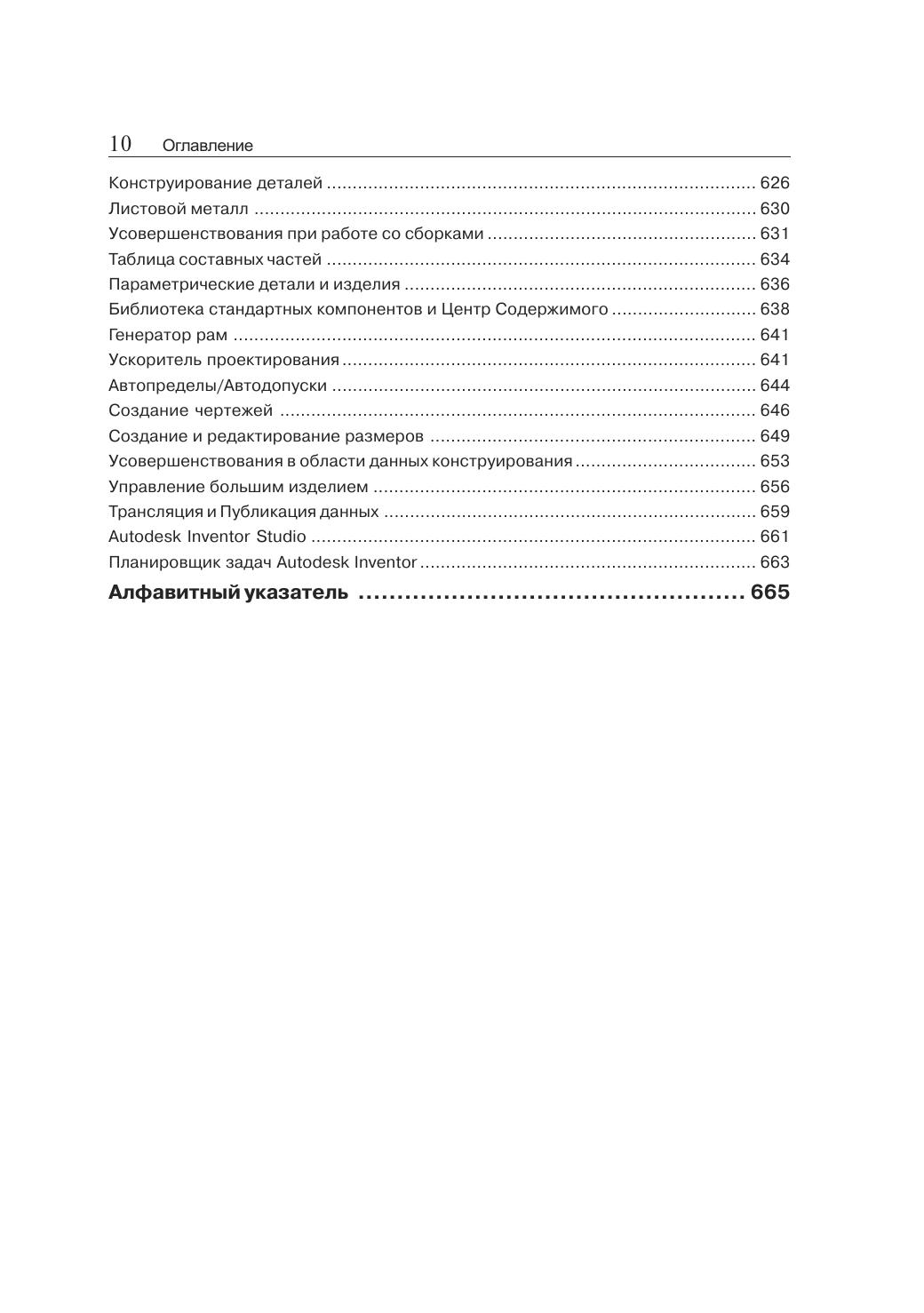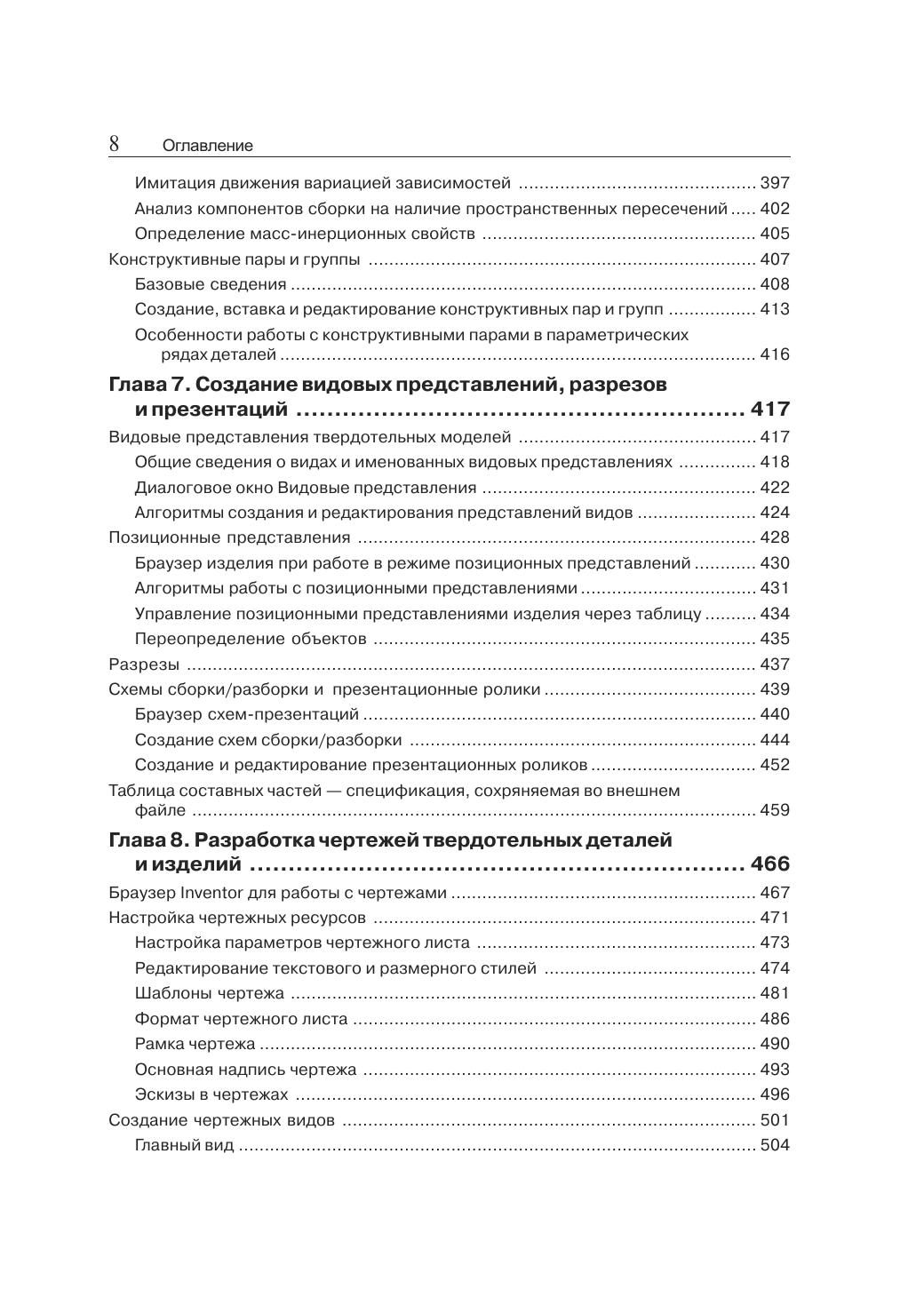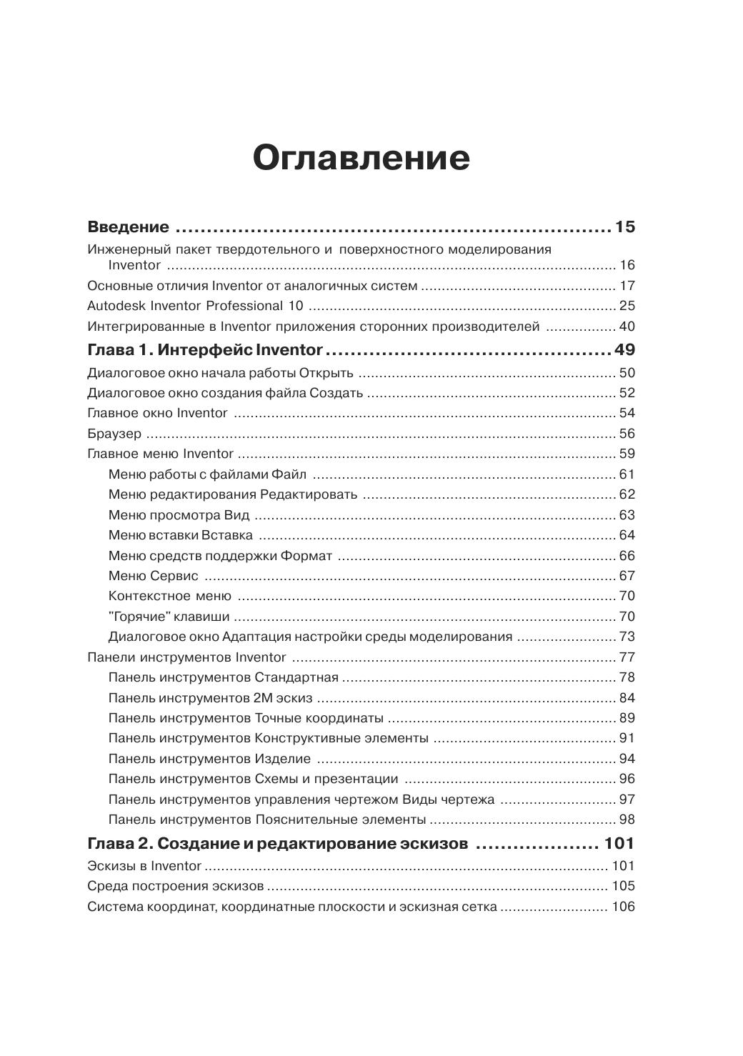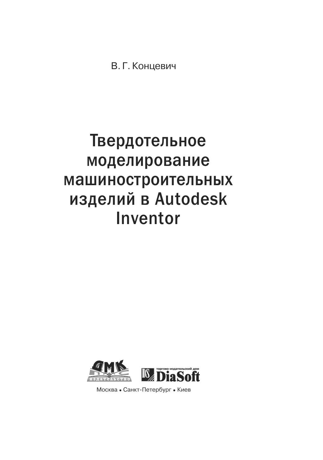 Autodesk Inventor — это инженерный пакет для параметрического твердотельного и поверхностного моделирования машин и механизмов. Инструментальные средства Autodesk Inventor обеспечивают полный цикл конструирования и создания конструкторской документации. С помощью пакета можно создавать трехмерные модели деталей и изделий, а также их рабочие чертежи, создавать адаптивные конструктивные элементы, детали и узлы, реализовывать возможность совместной работы над конструкцией всех разработчиков, включая группы инженеров, находящихся на большом удалении друг от друга. Несмотря на то, что Inventor является одной из самых широко распространенных систем параметрического твердотельного моделирования на территории СНГ, в специализированных книжных магазинах практически отсутствуют русскоязычные версии руководства по его применению с целью создания твердотельных моделей. Данное издание представляет собой реализацию многолетнего практического опыта автора по обучению программного обеспечения для твердотельного моделирования при подготовке высококвалифицированных специалистов в области САПР. Книга предназначена для различных групп читателей: студентов и аспирантов технических вузов, инженеров-проектировщиков, специалистов в области CAD/CAM/CAE/PDM-технологий, а также менеджеров среднего и высшего уровней, специализирующихся в области реинжиниринга конструкторско-технологической подготовки производства. Сведения, изложенные в данном издании, могут быть полезными пользователям, использующим в своей практике версии Autodesk Inventor R5"R7, как Series, так и Professional.